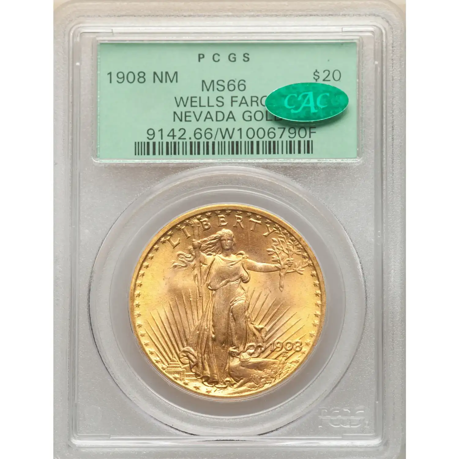1908 Double Eagles Saint Gaudens PCGS MS-66 No Motto Wells Fargo CAC