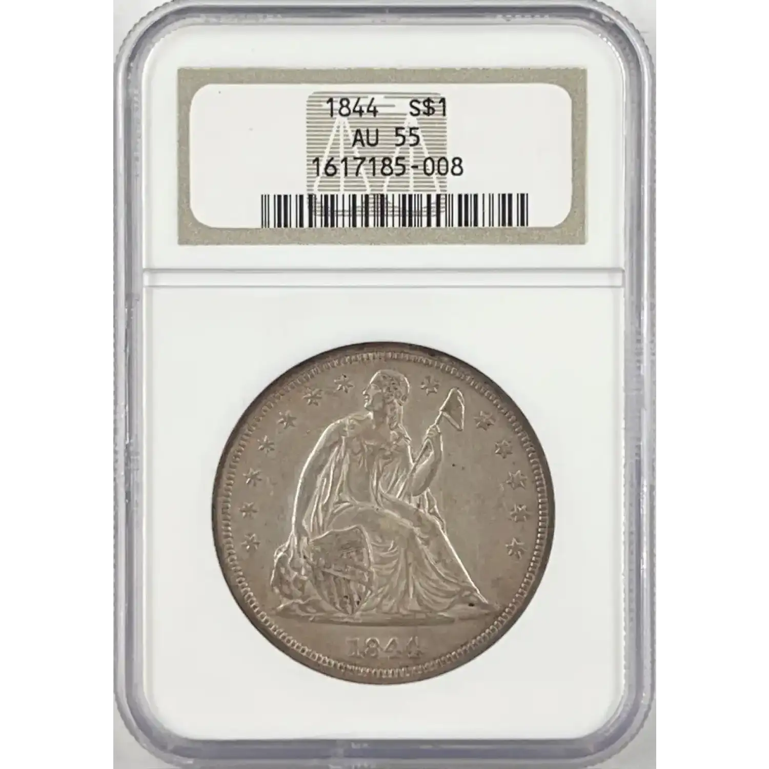 1844 $1 NGC AU55 Seat Liberty Silver Dollar 1617185-008