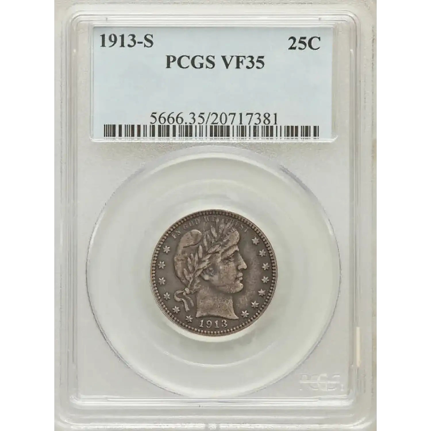 1913-S Quarter Dollars Barber or Liberty Head PCGS VF-35