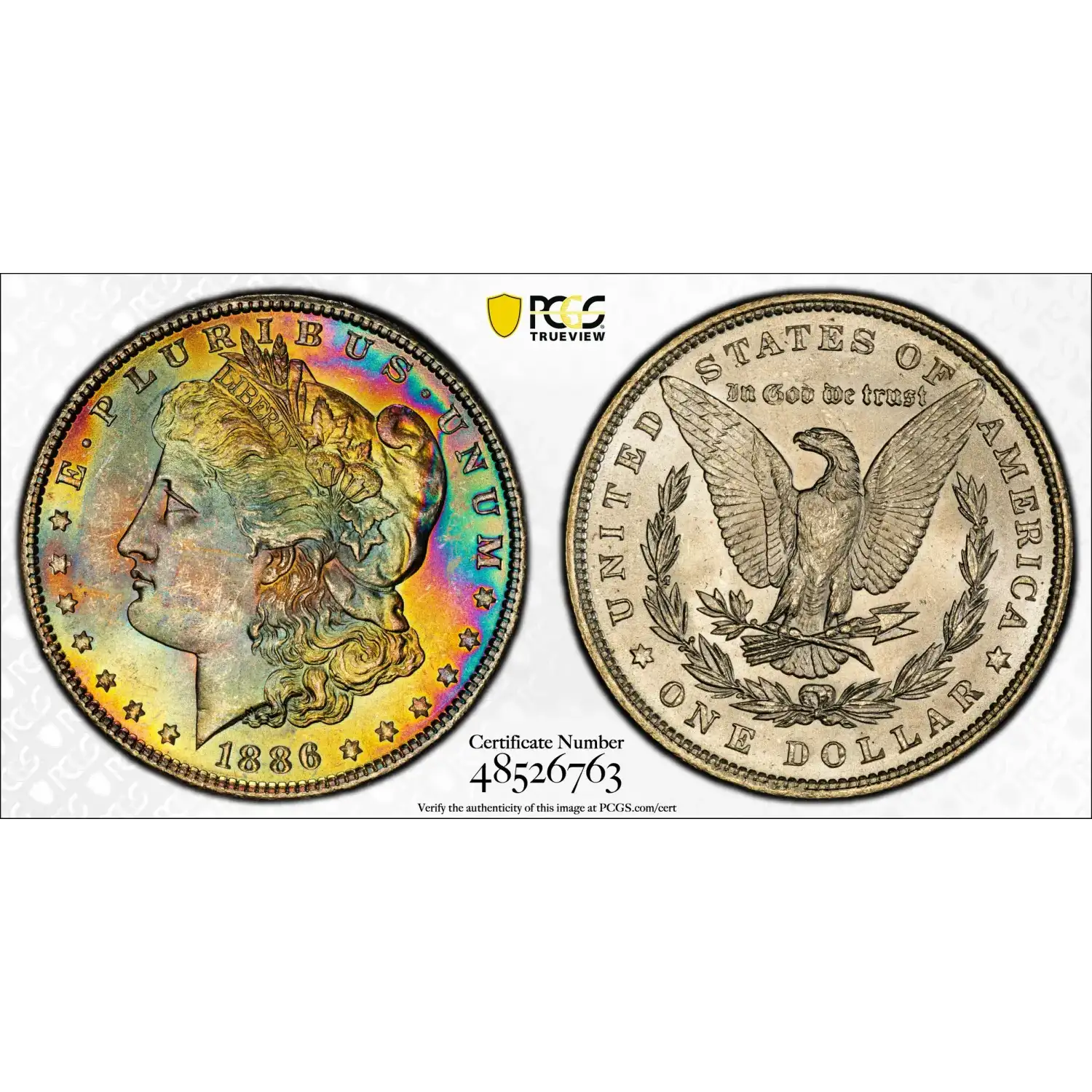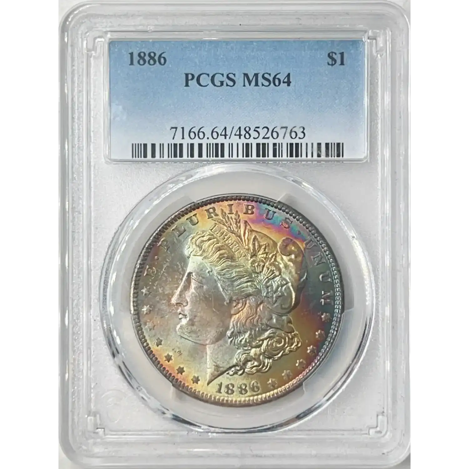 1886 $1 PCGS MS64 Rainbow Toned Morgan Silver Dollar 48526763