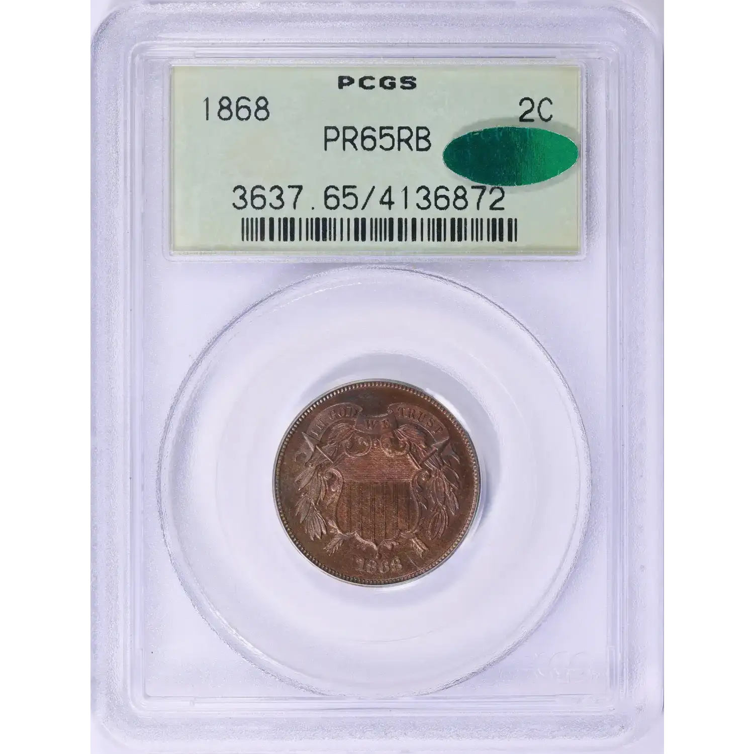 1868 Two cent pieces PCGS PR-65 RB CAC