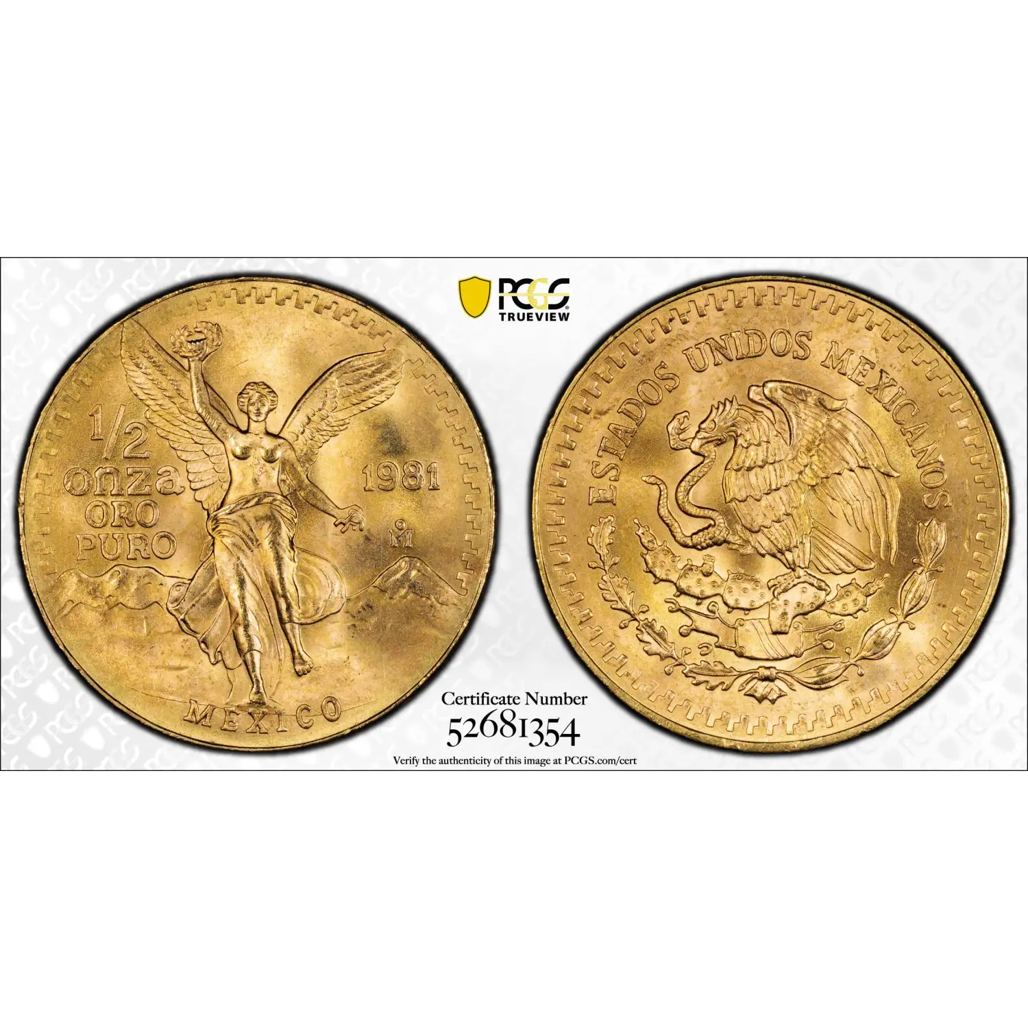 1981 MEXICO Gold 1/2 ONZA (1/2 Ounce of Pure Gold) PCGS MS-68 Libertad Au
