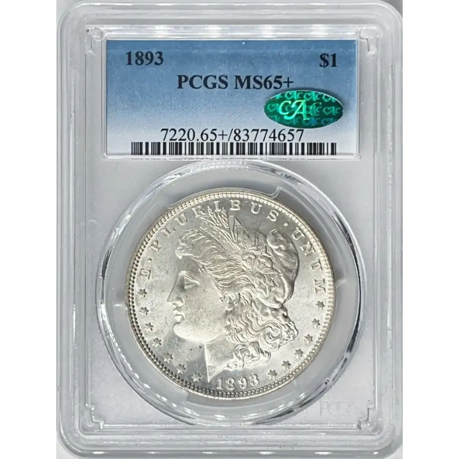 1893 $1 PCGS MS65+ CAC Morgan Silver Dollar 83774657