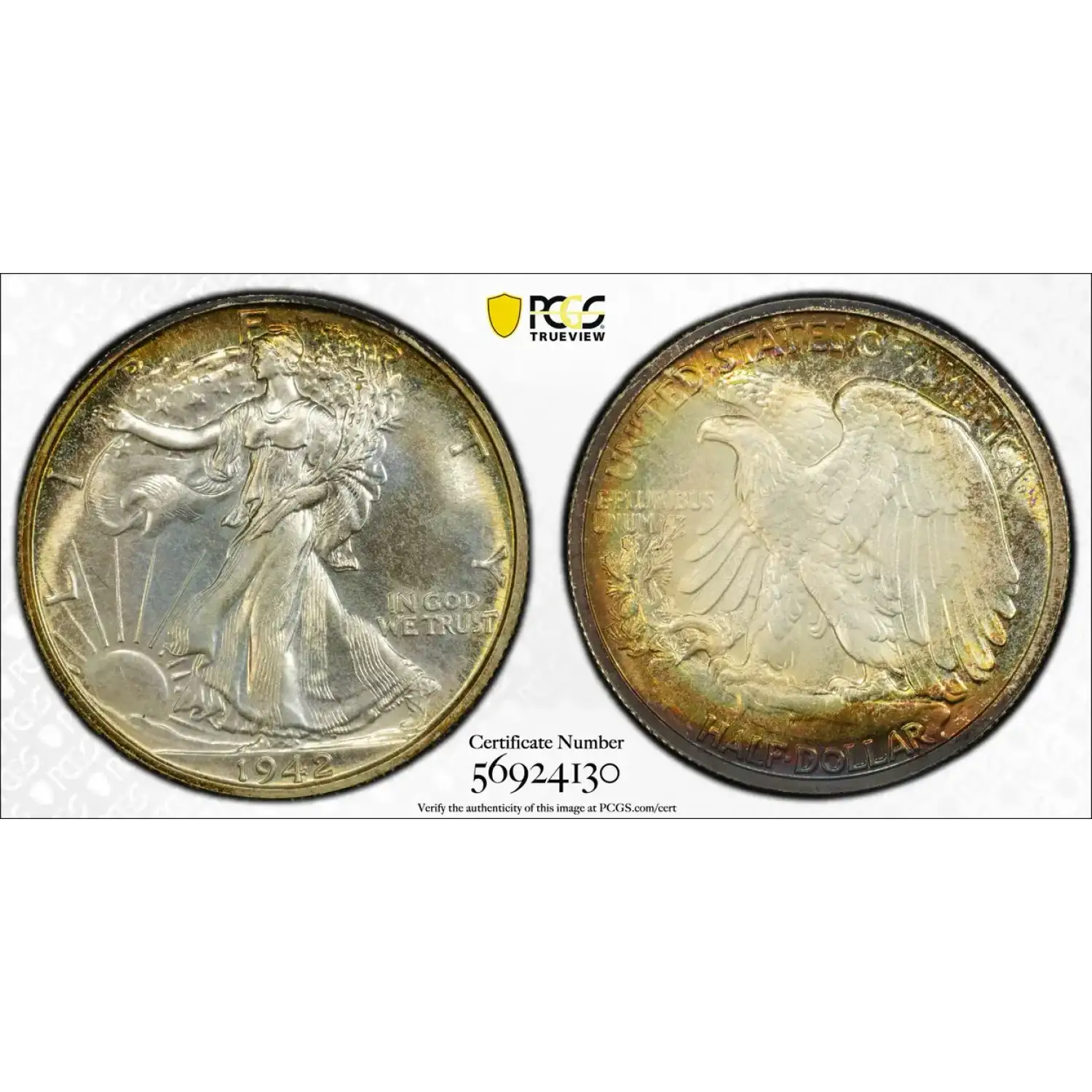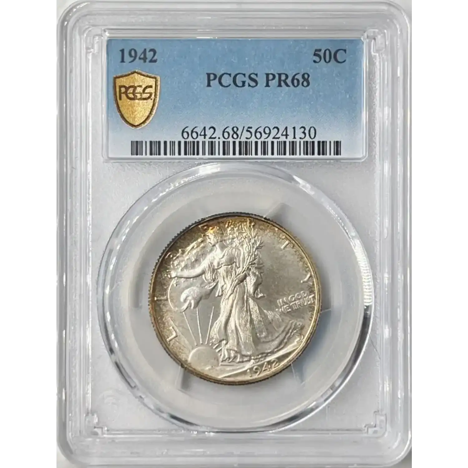 1942 50C PCGS PR68 Rainbow Toned Walking Liberty Silver Half Dollar 56924130