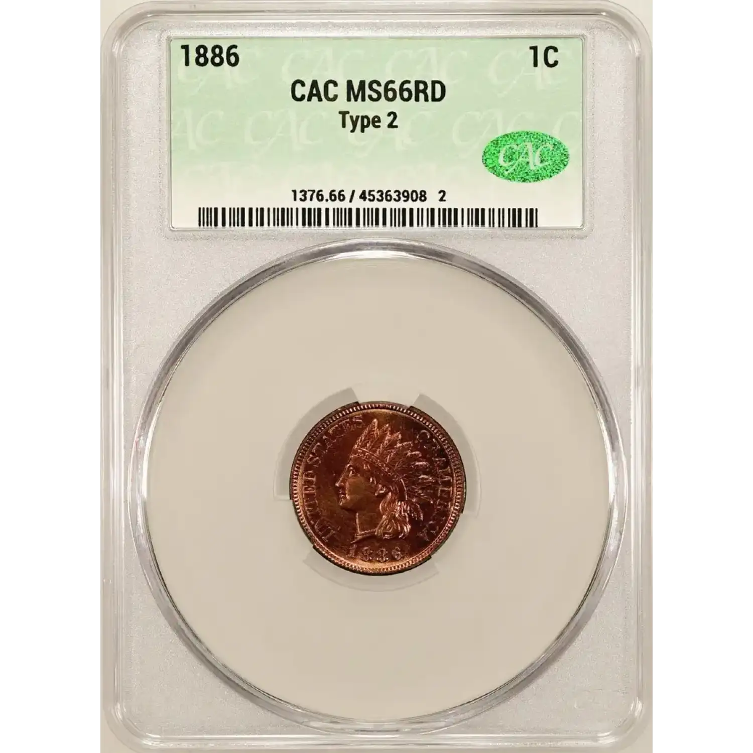 1886 1C Type 2 CACG MS66RD CAC Indian Head Cent Penny 45363908