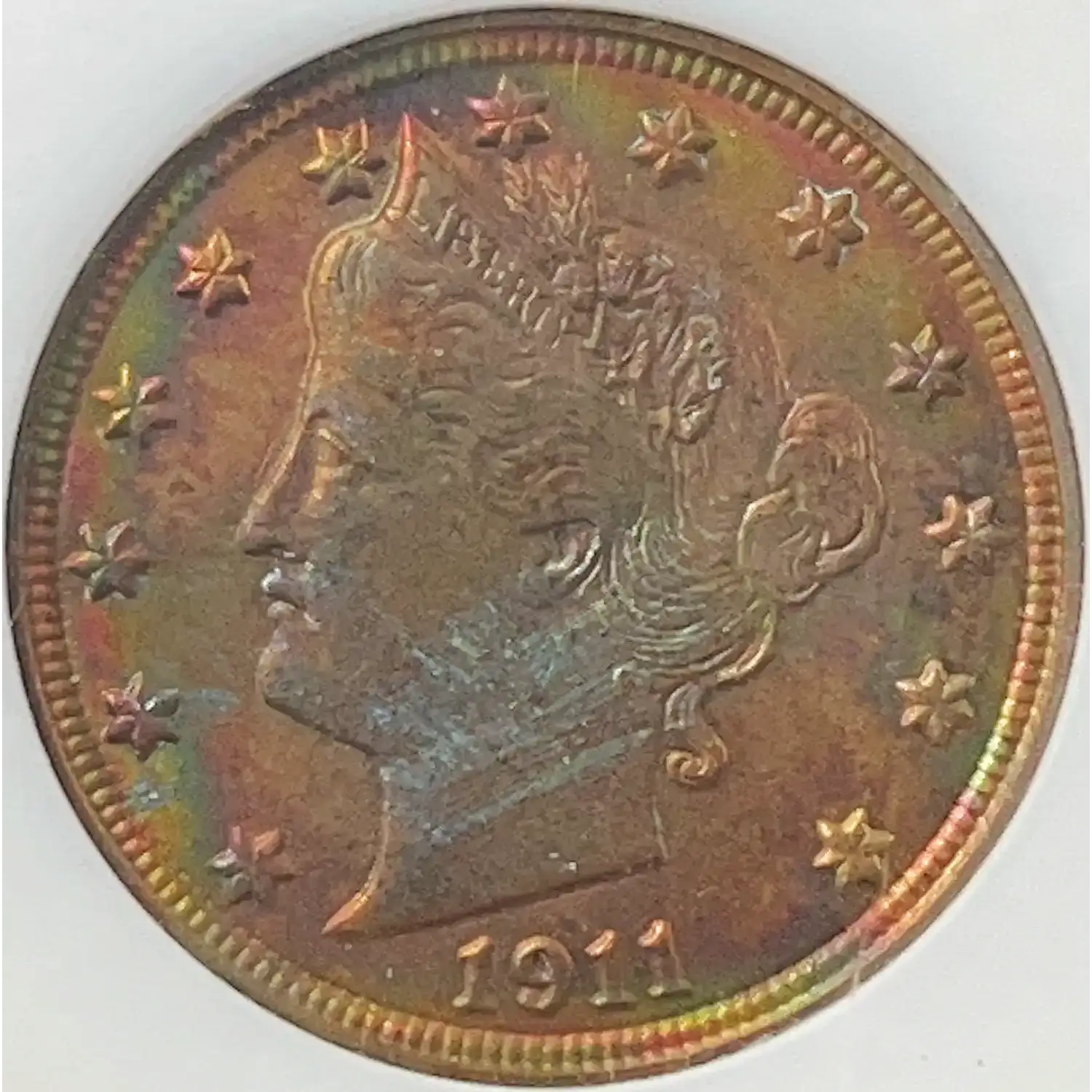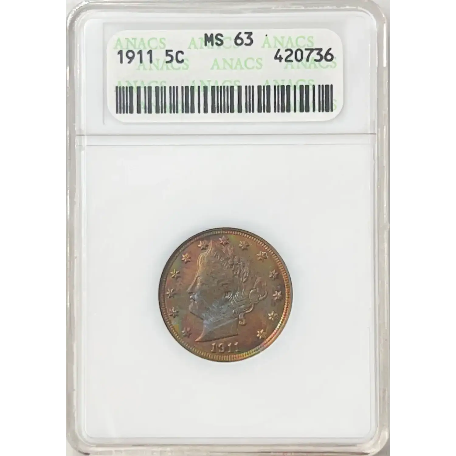 1911 ANACS MS63 Rainbow Toned Liberty V Nickel 00420736