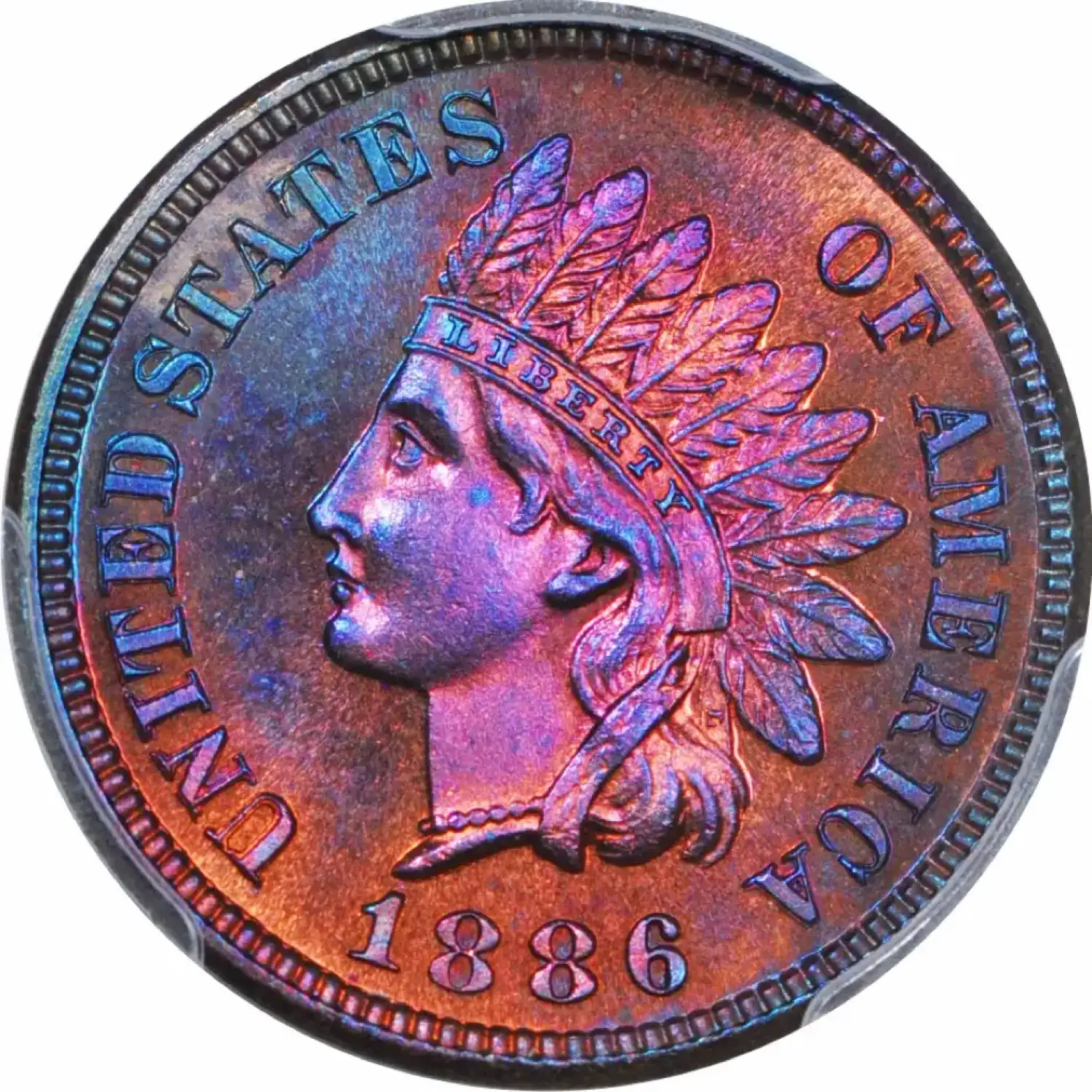 1886 1C PCGS PR66RB Rainbow Toned Indian Head Penny Cent Variety 1 35968424 P