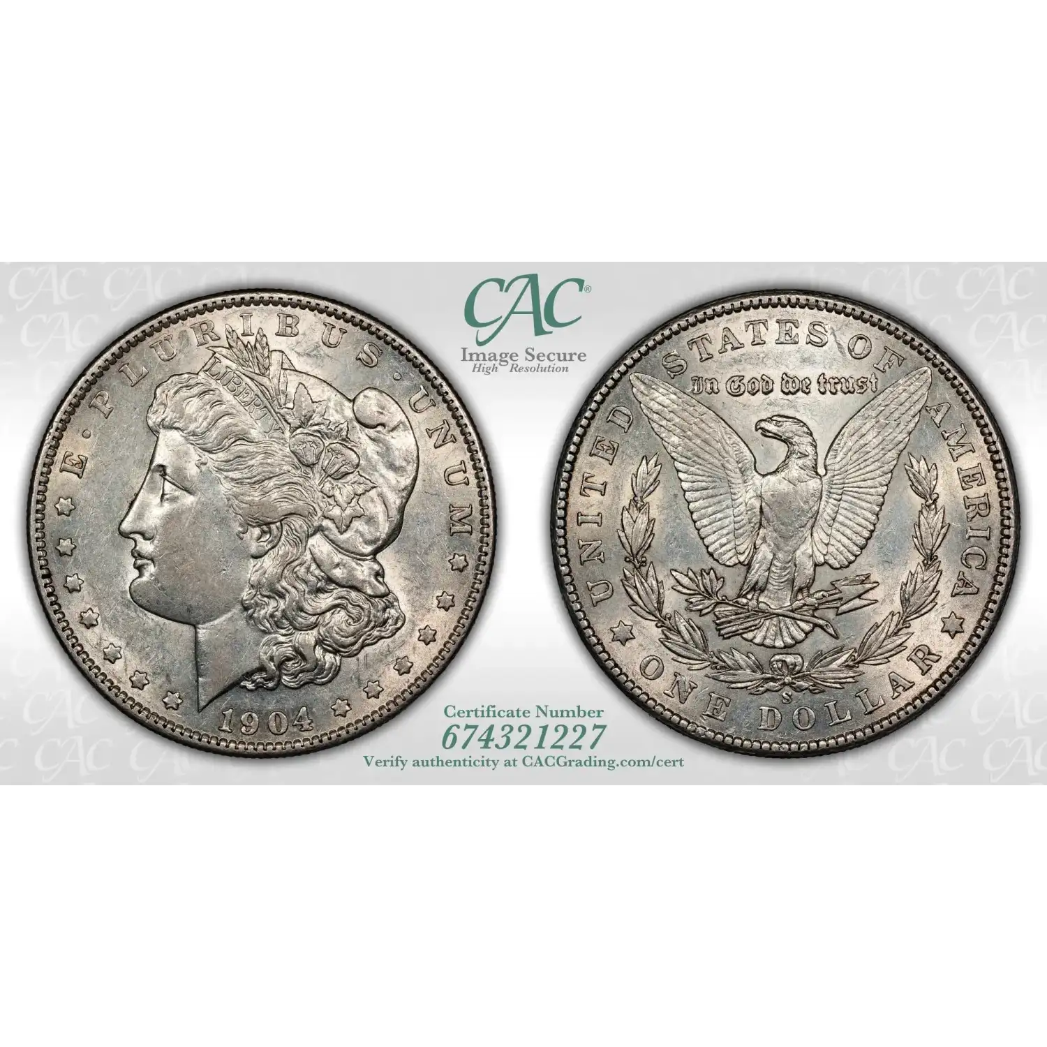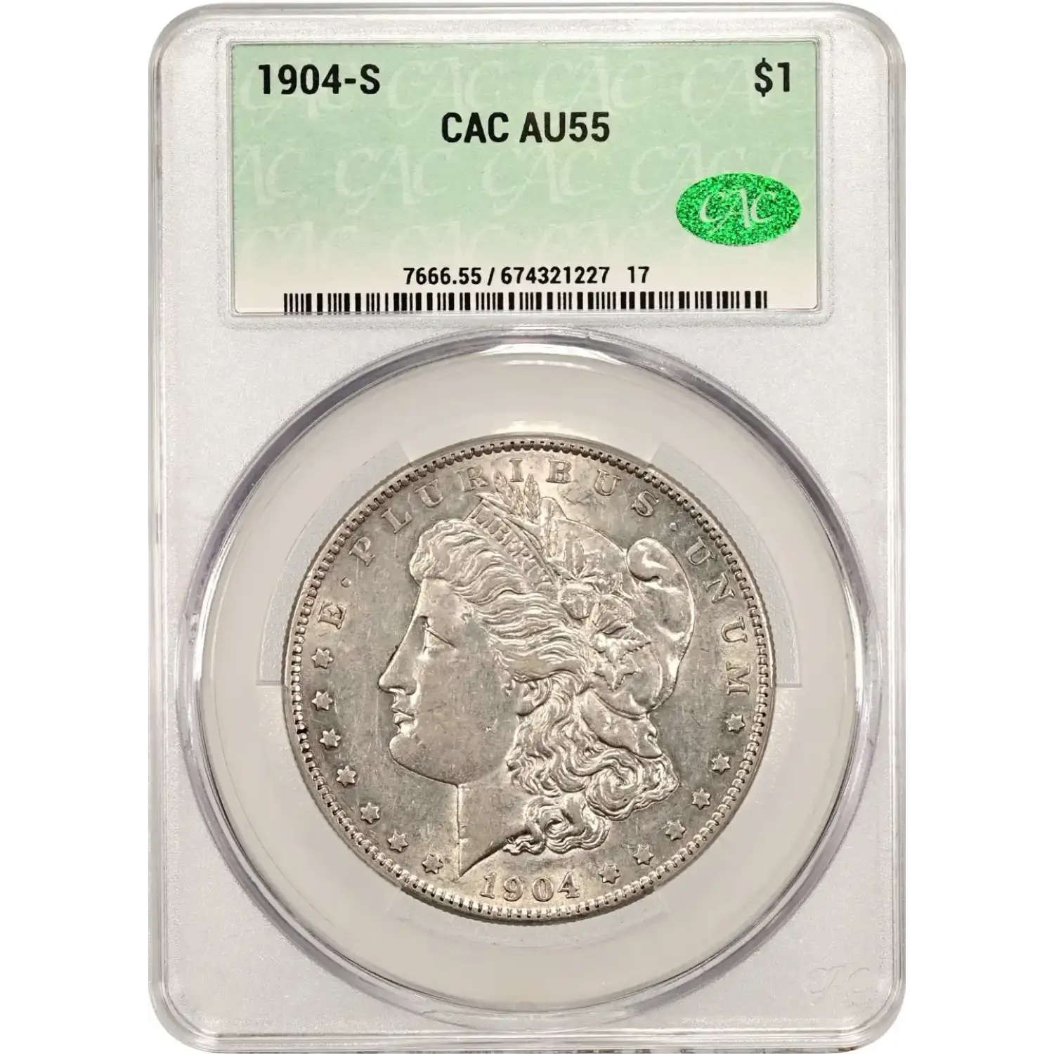 1904-S $1 CACG AU55 CAC Morgan Silver Dollar 674321227