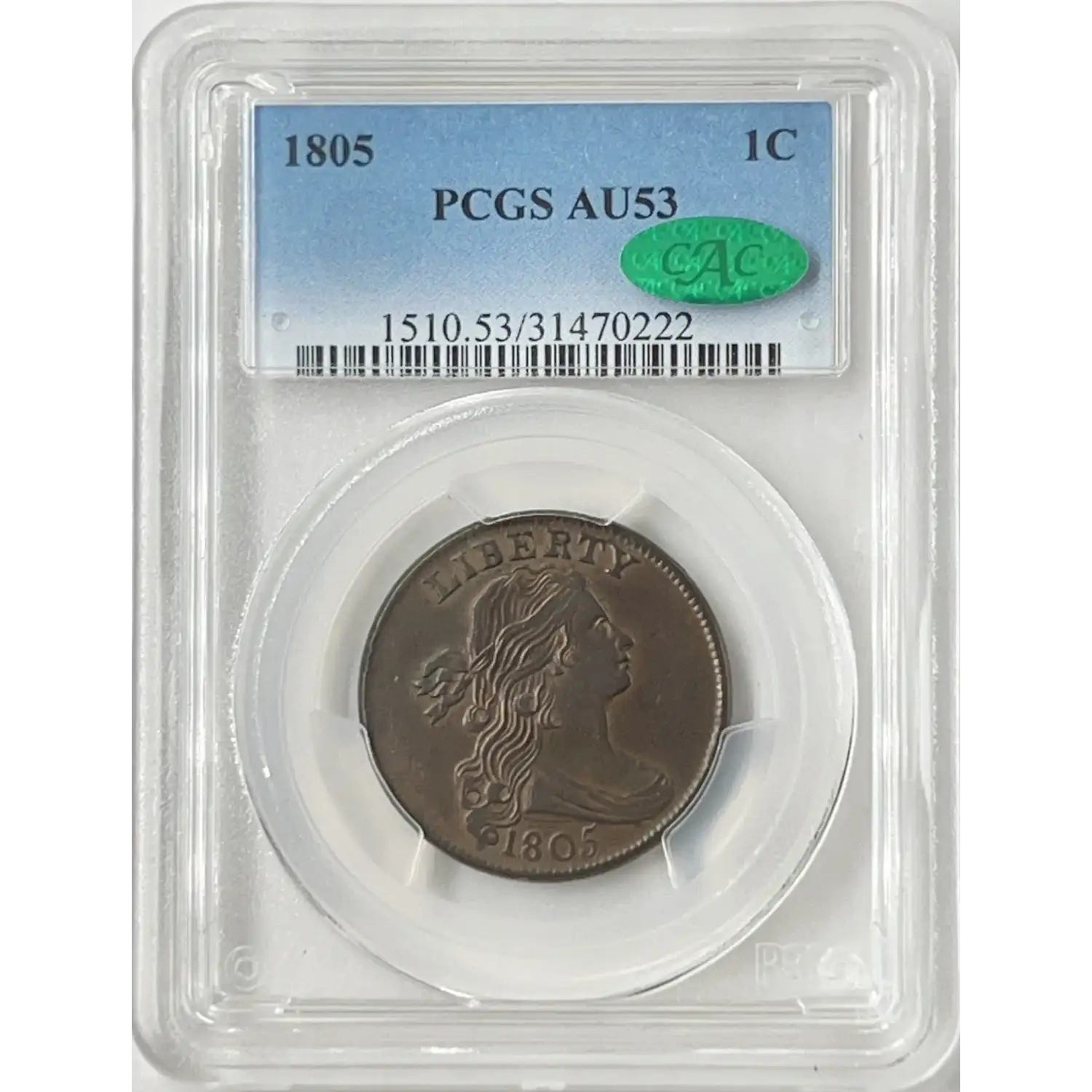 1805 1C PCGS AU53 CAC Draped Bust Cent 31470222