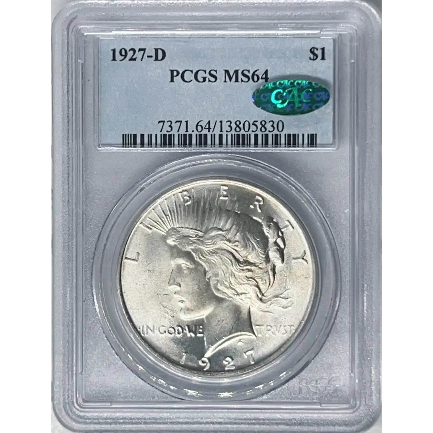 1927-D $1 PCGS MS64 CAC Peace Silver Dollar 13805830