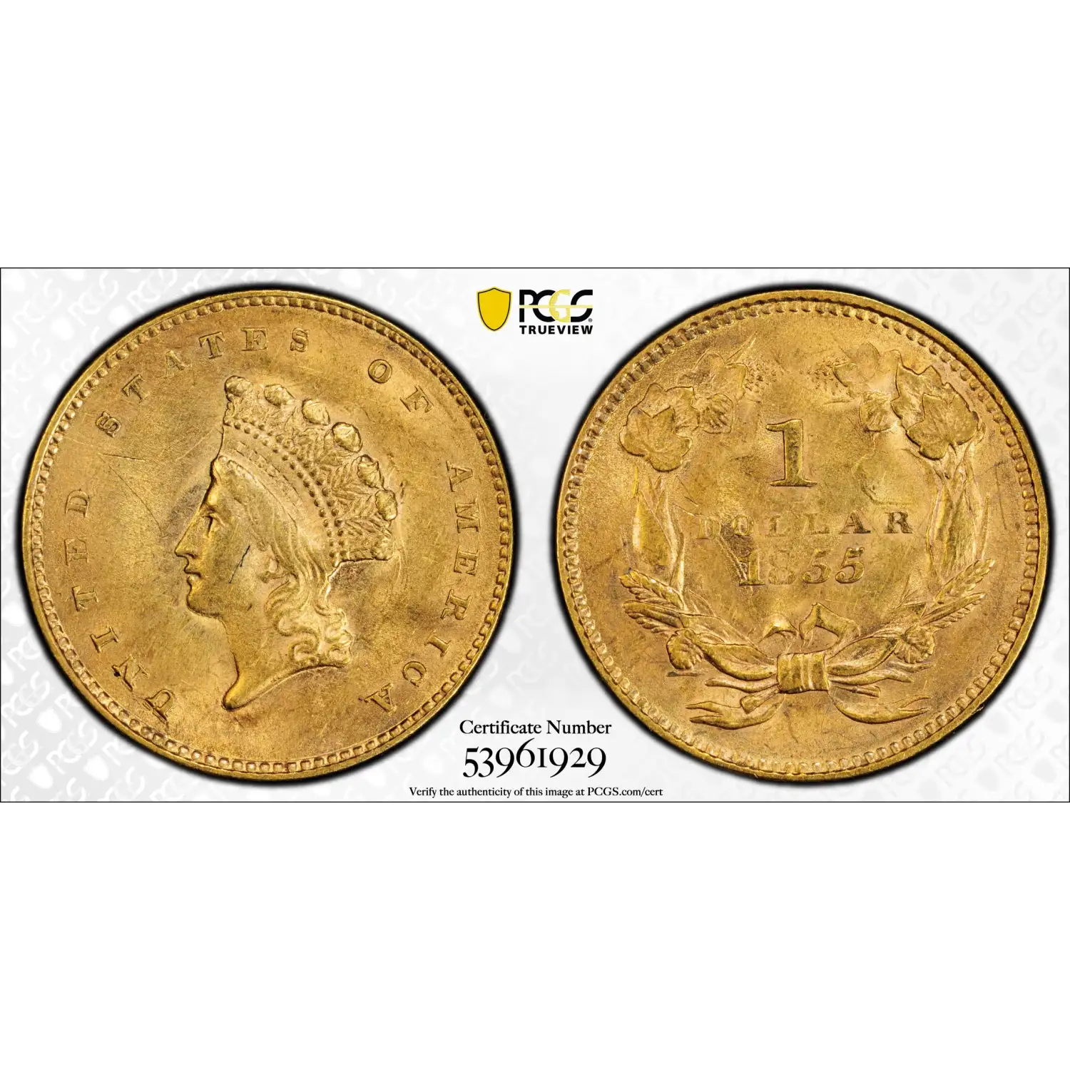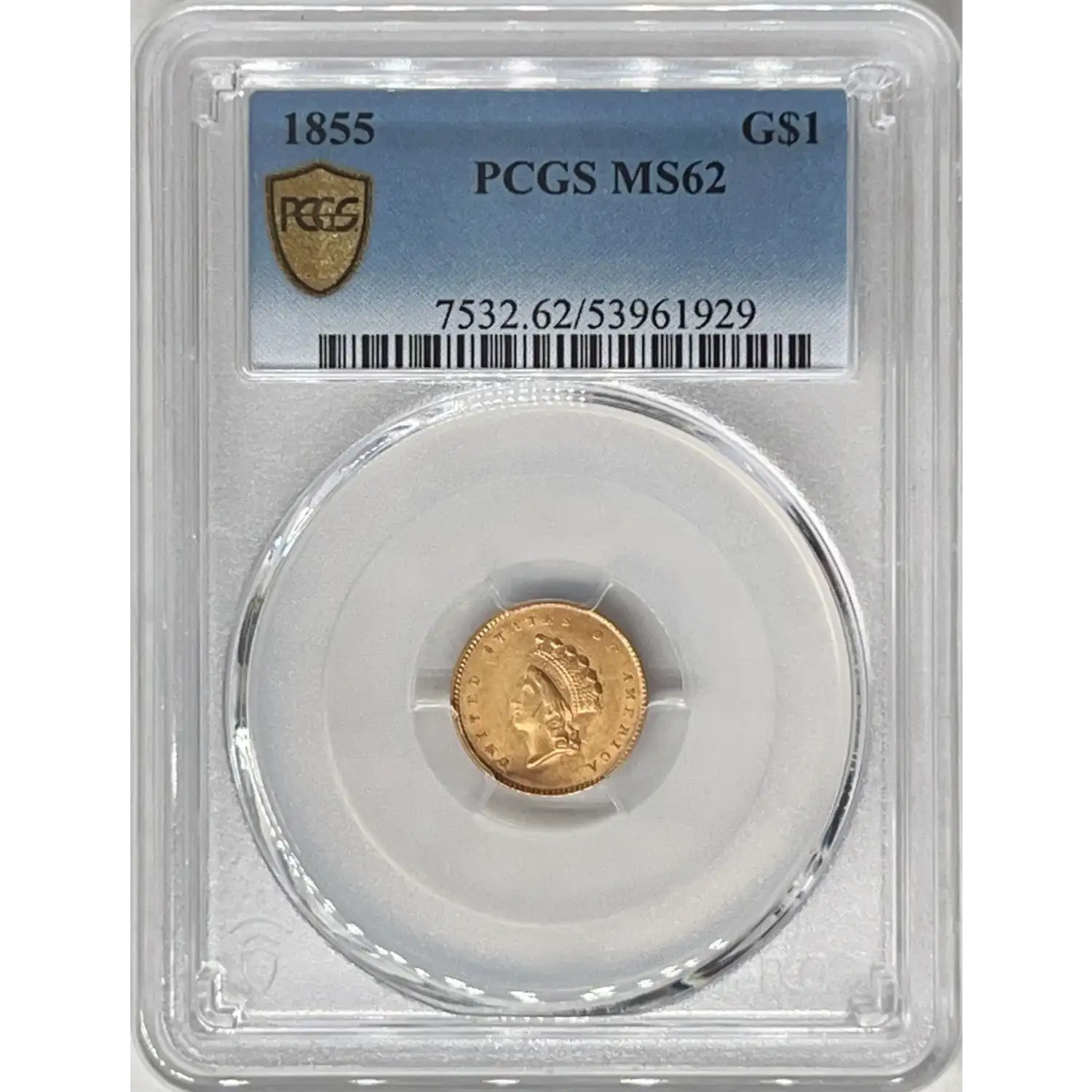 1855 G$1 Type 2 PCGS MS62 Gold Princess Dollar 53961929