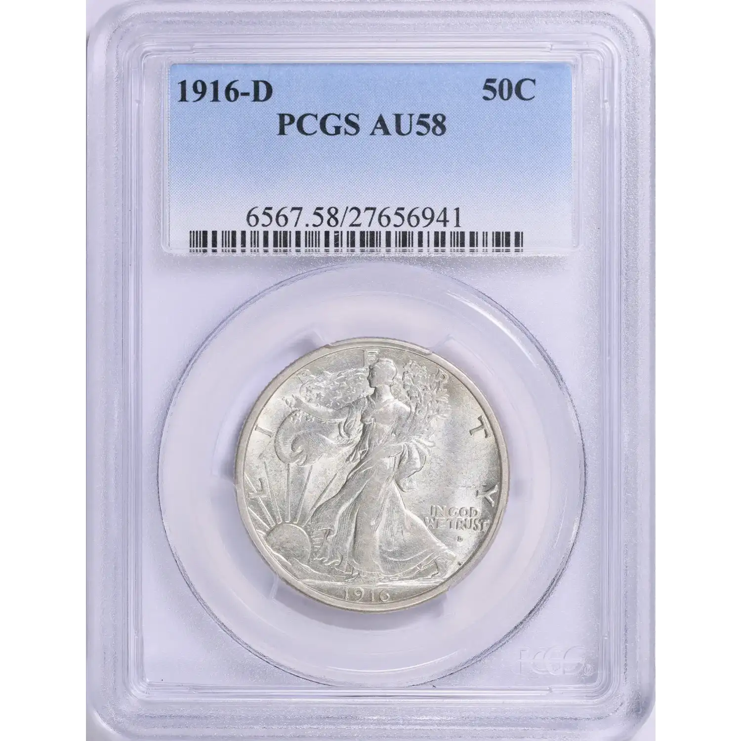 1916-D 50C PCGS AU58 Walking Liberty Silver Half Dollar 27656941