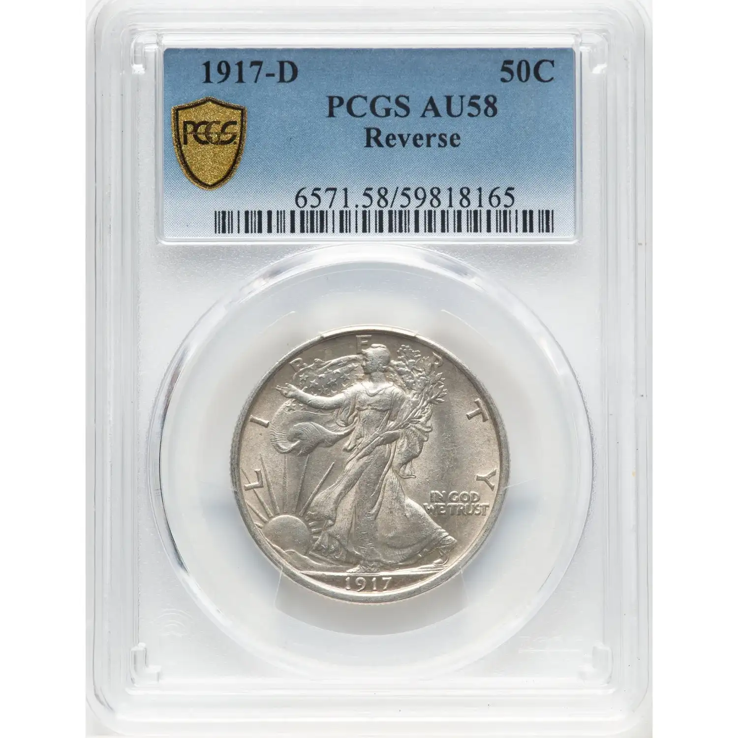 1917-D 50C Reverse PCGS AU58 Walking Liberty Half Dollar 59818165
