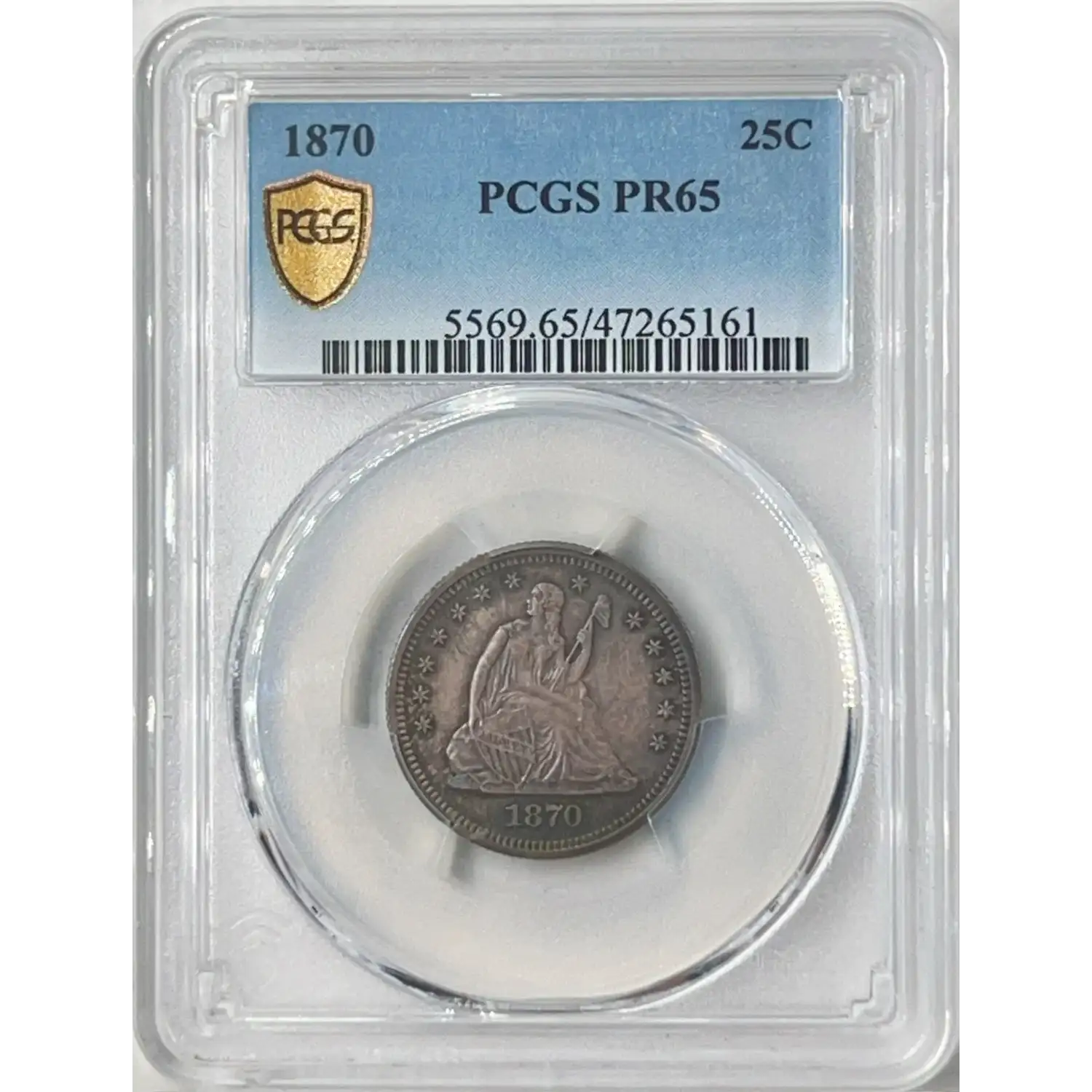 1870 Seated Liberty Quarter PCGS PR-65