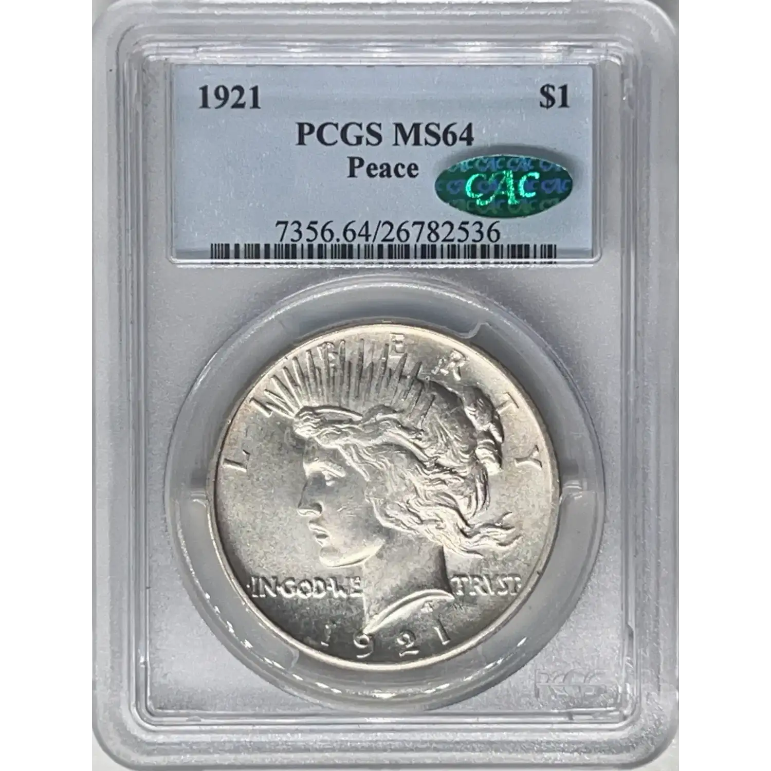1921 $1 PCGS MS64 CAC Peace Silver Dollar 26782536