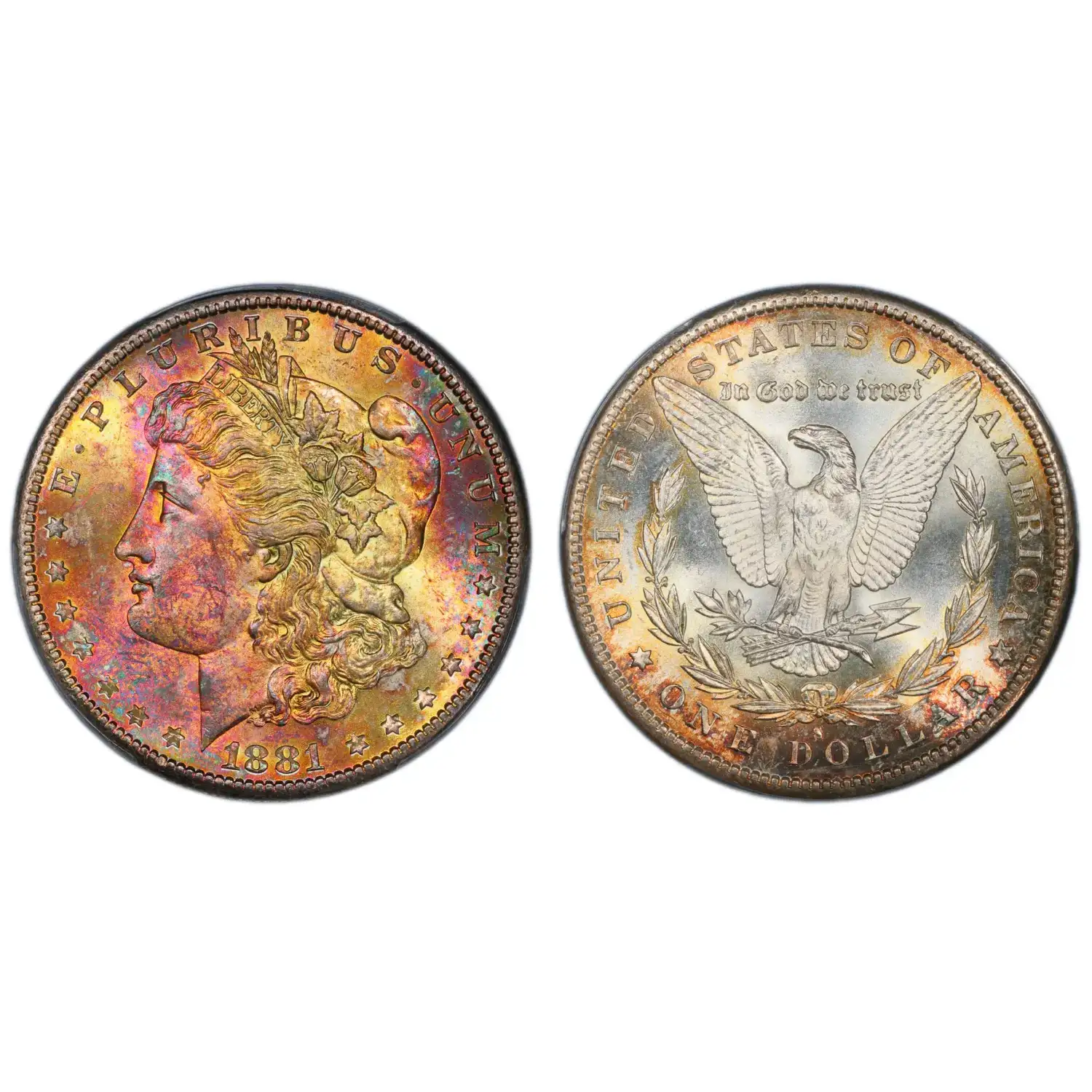 1881-S $1 PCGS MS66 Rainbow Toned Morgan Silver Dollar 84102995