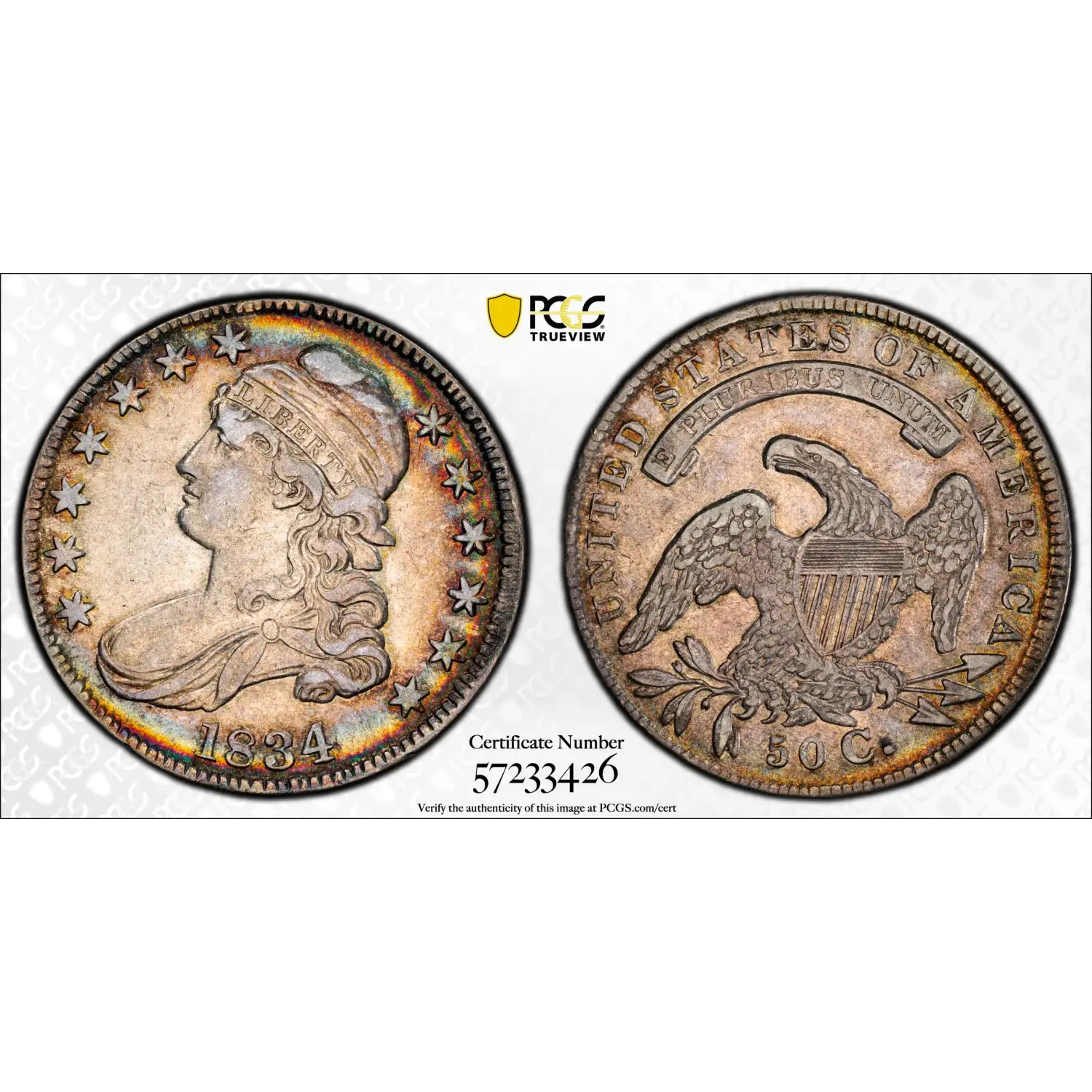 1834 50C PCGS XF45 Rainbow Toned Capped Bust Half Dollar Lg Date, Sm Letters 57233426