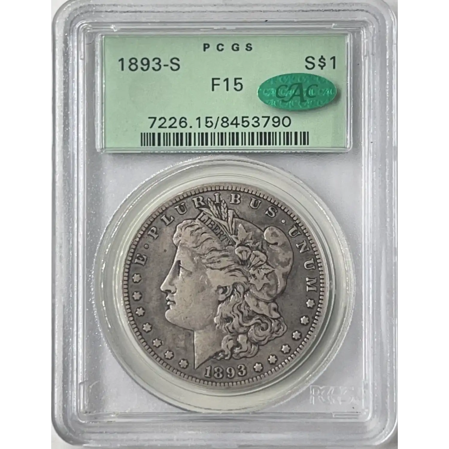 1893-S $1 PCGS OGH F15 CAC Morgan Silver Dollar 08453790