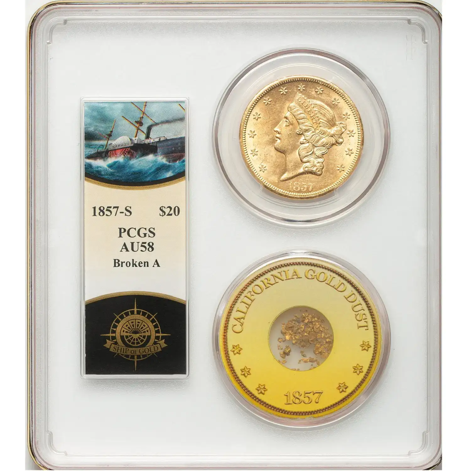 1857 Double Eagles Liberty Head PCGS AU-58 Broken A S.S. Central America