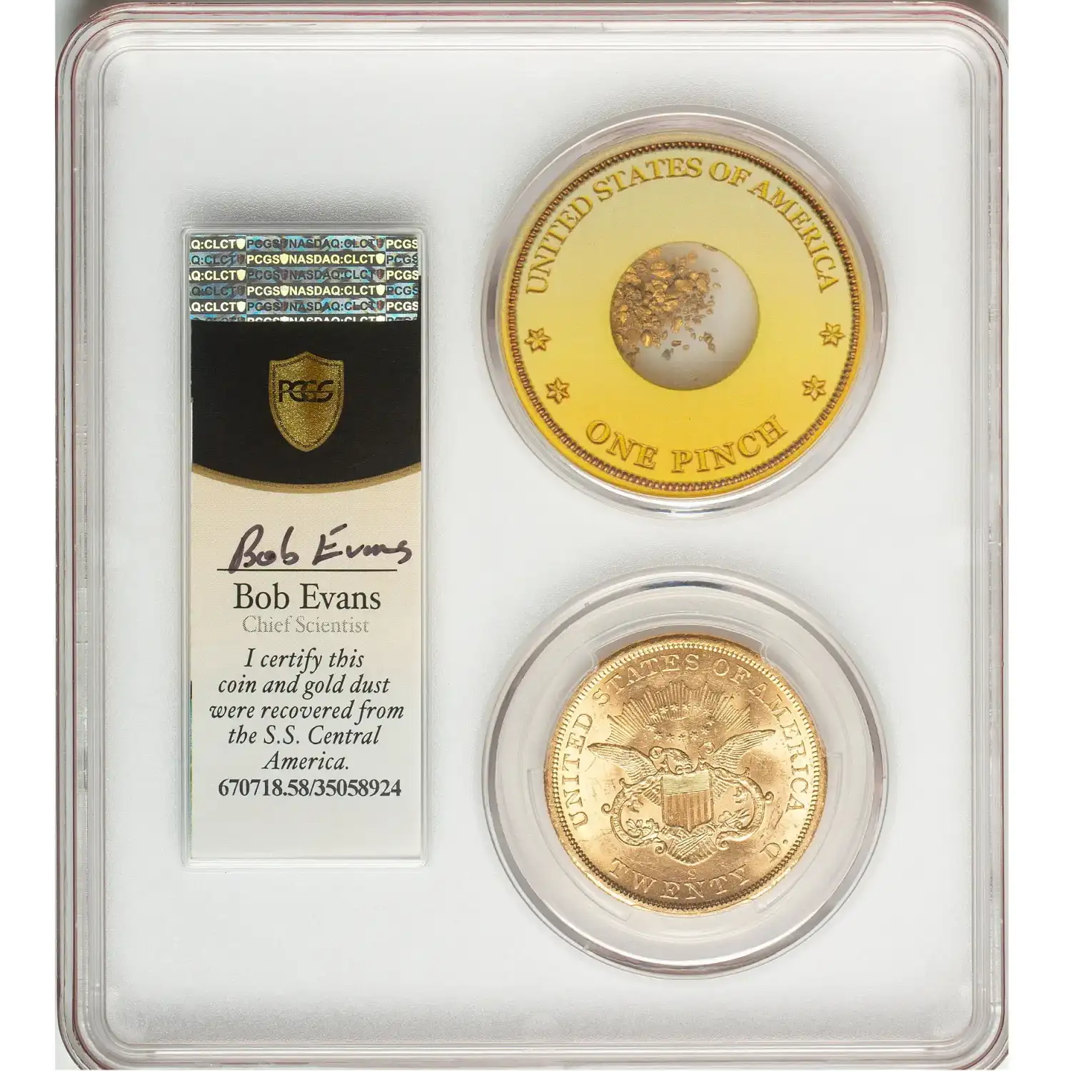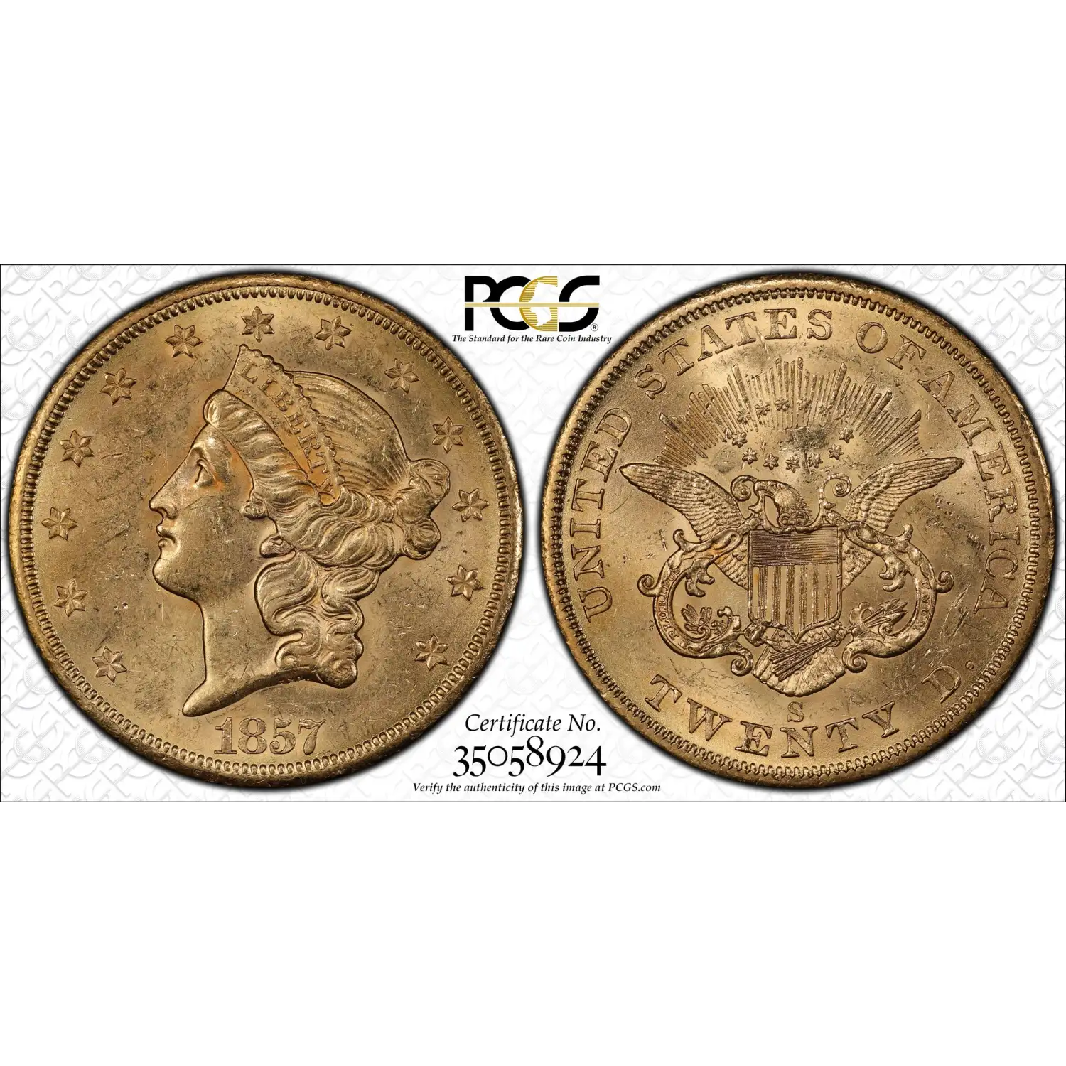 1857-S $20 Gold Liberty S.S. Central America PCGS AU58 Gold Double Eagle w/ Pinch 35058924