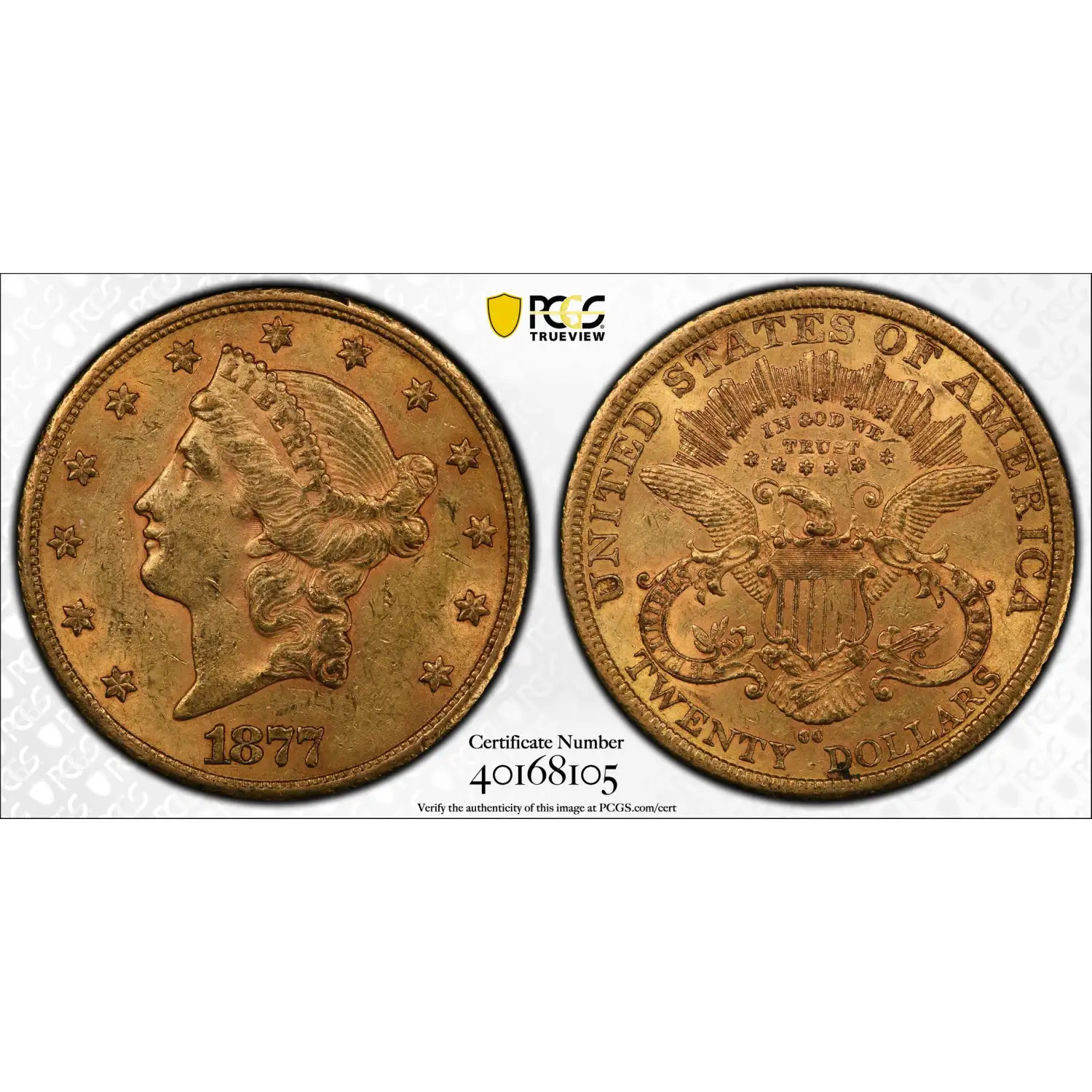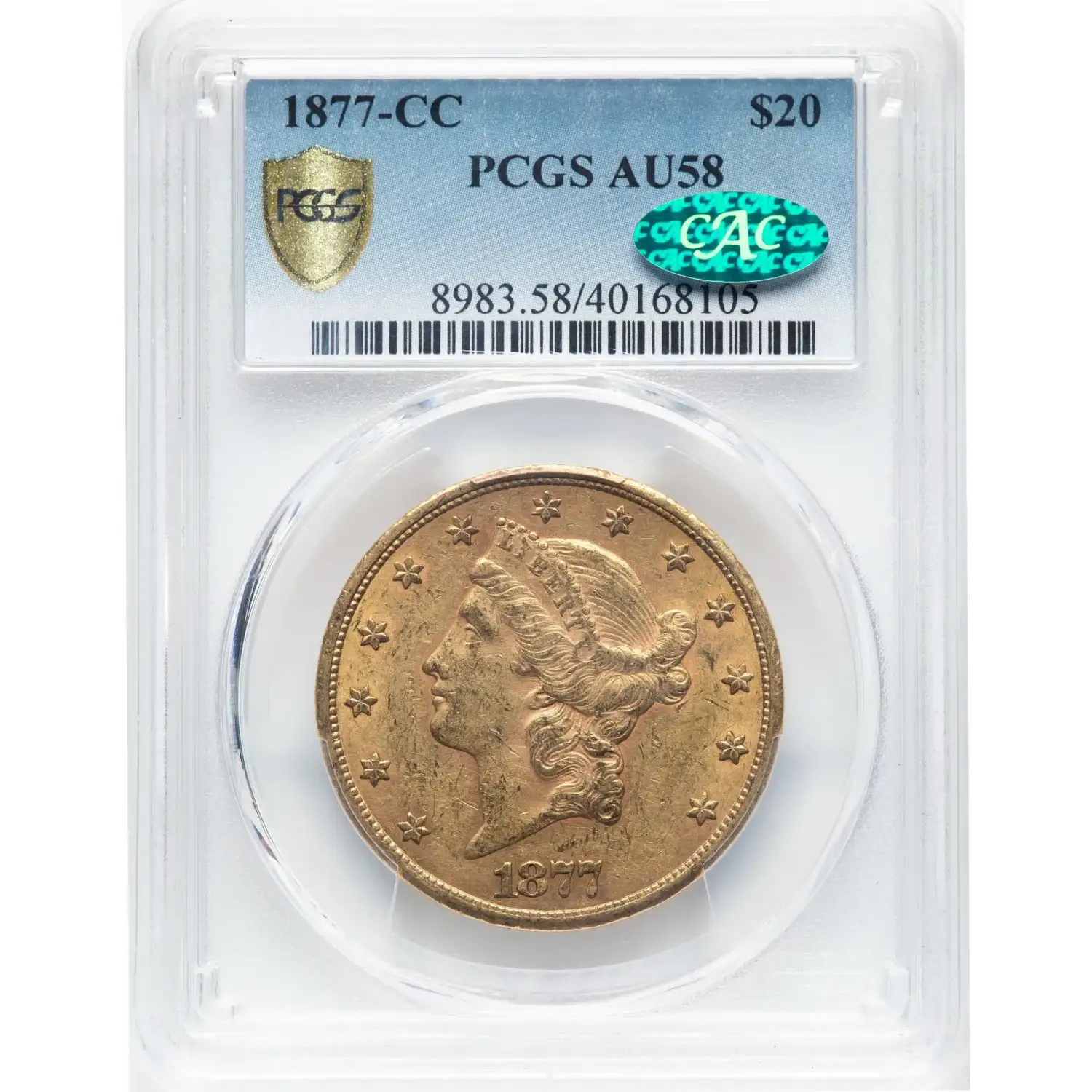 1877-CC $20 Gold Liberty PCGS AU58 CAC Gold Double Eagle 40168105