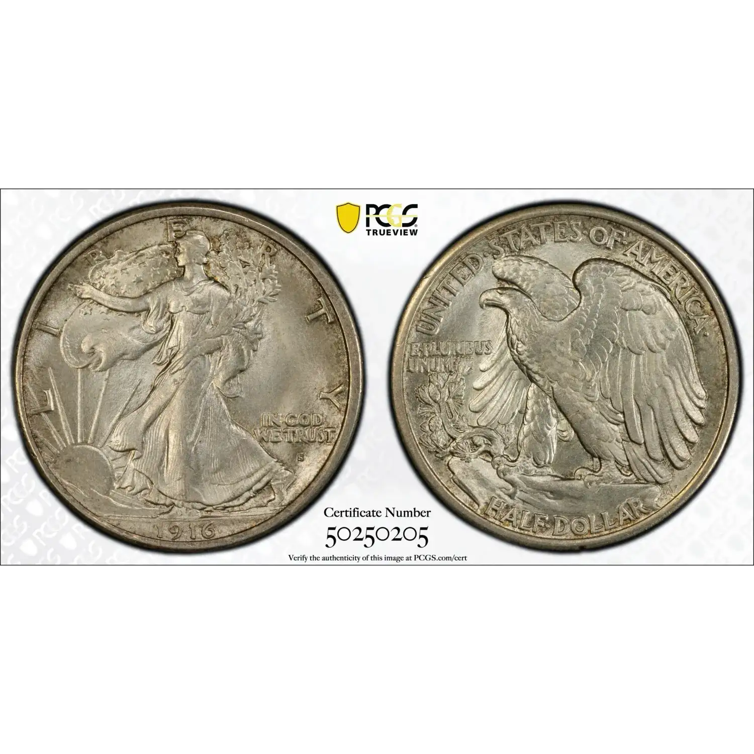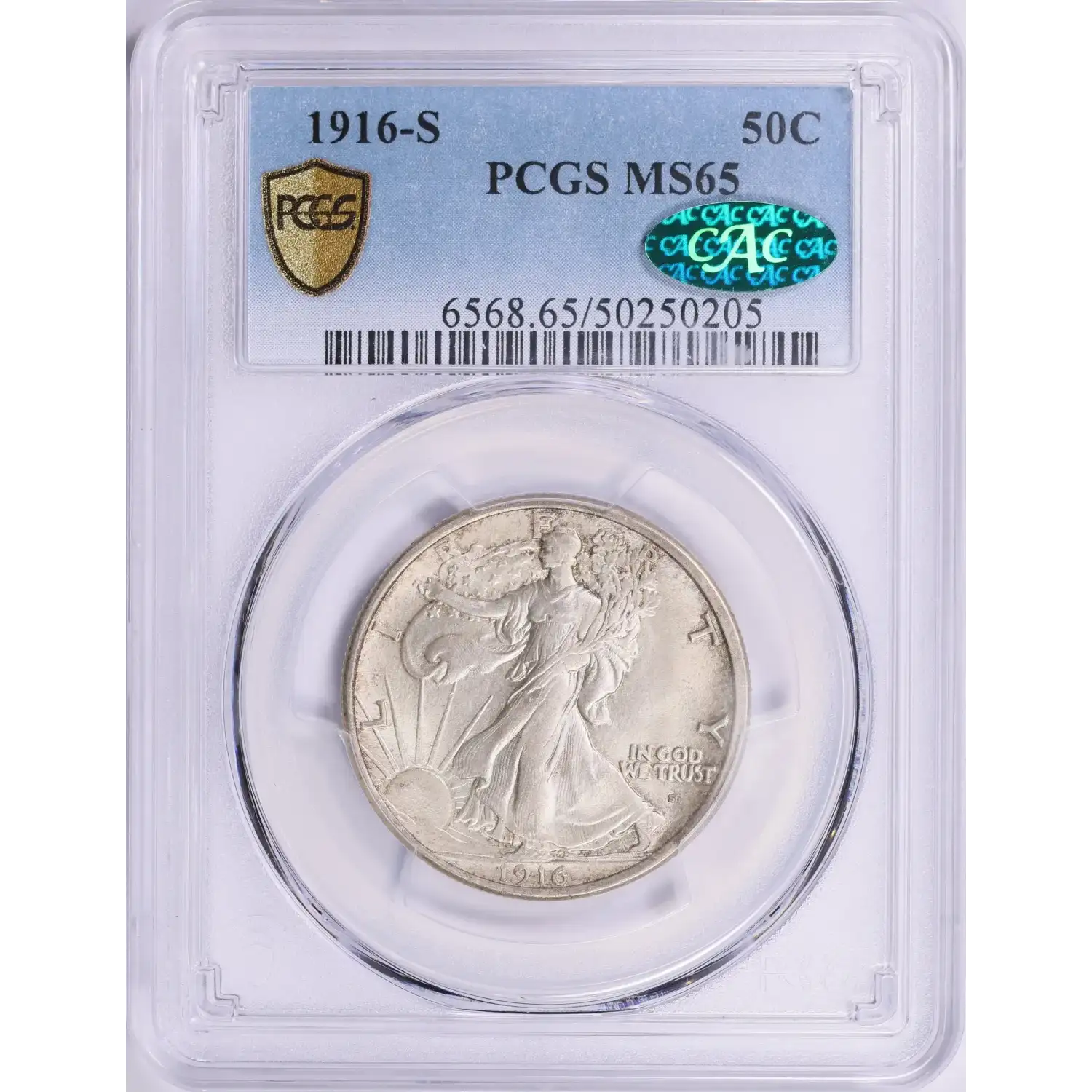 1916-S 50C PCGS MS65 CAC Walking Liberty Silver Half Dollar 50250205