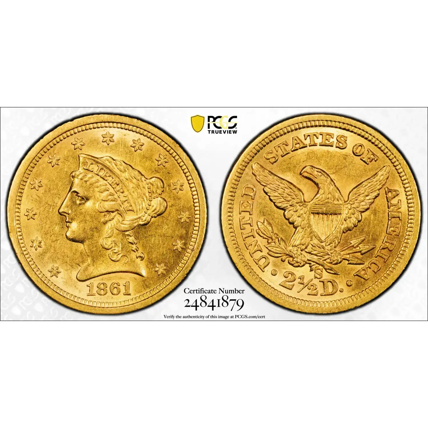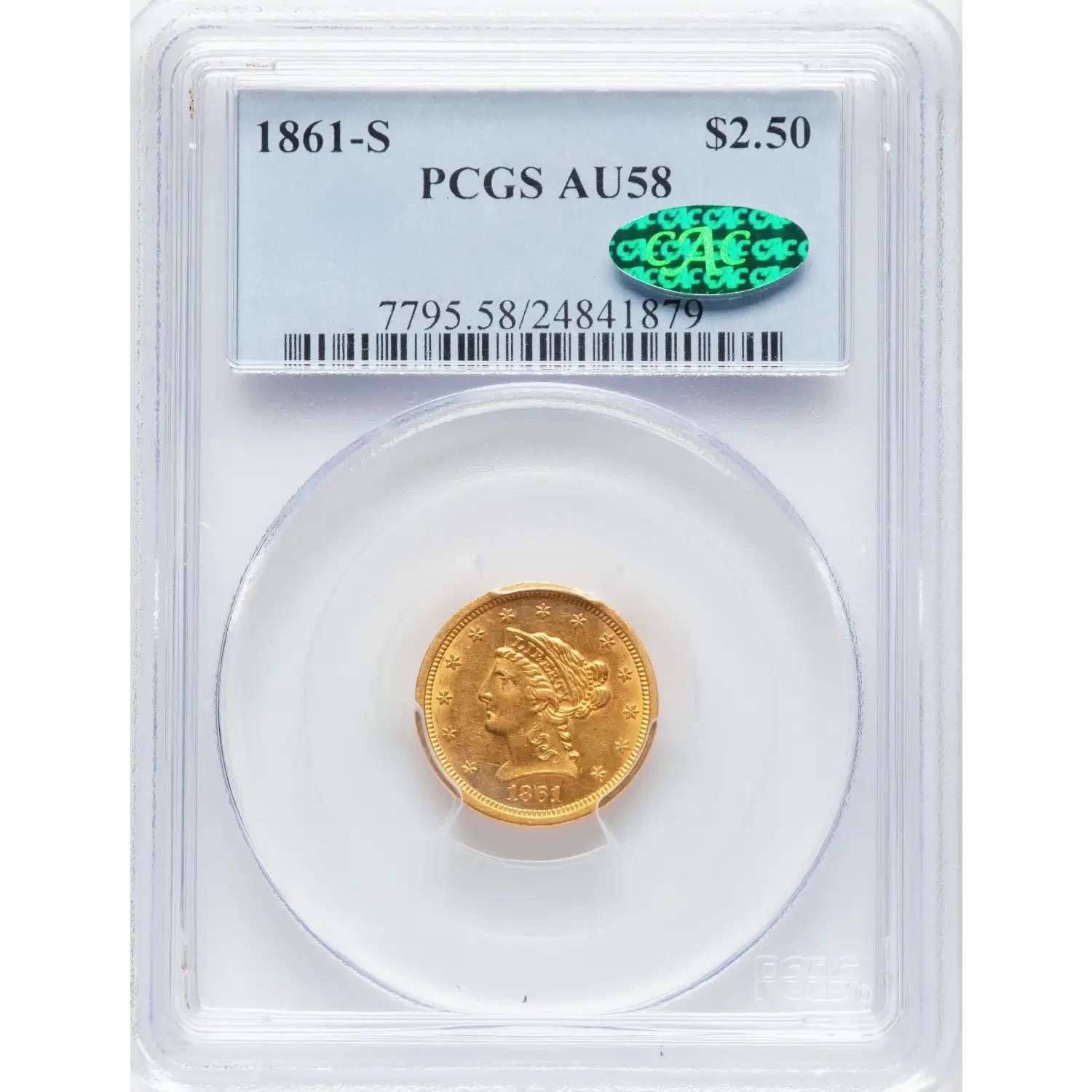 1861-S $2.50 Gold Liberty PCGS AU58 CAC Gold Quarter Eagle 24841879