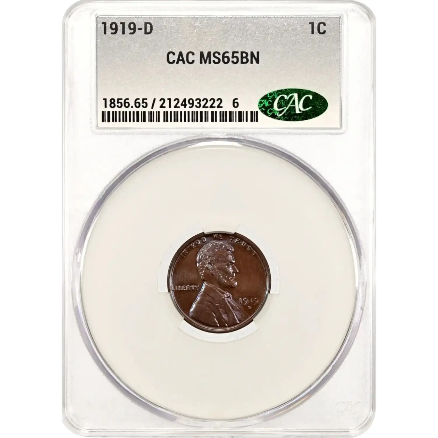 1919-D 1C CACG MS65BN CAC Lincoln Wheat Cent 212493222