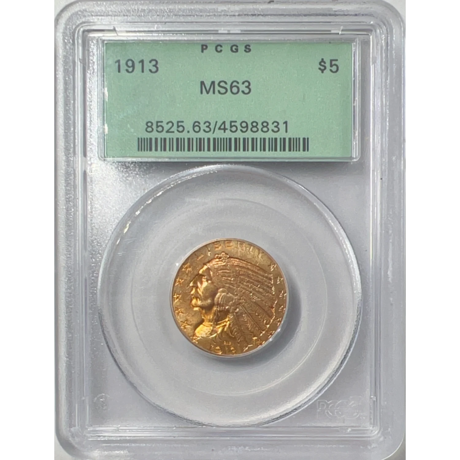 1913 $5 Gold Indian Head PCGS OGH MS63 Gold Half Eagle 04598831