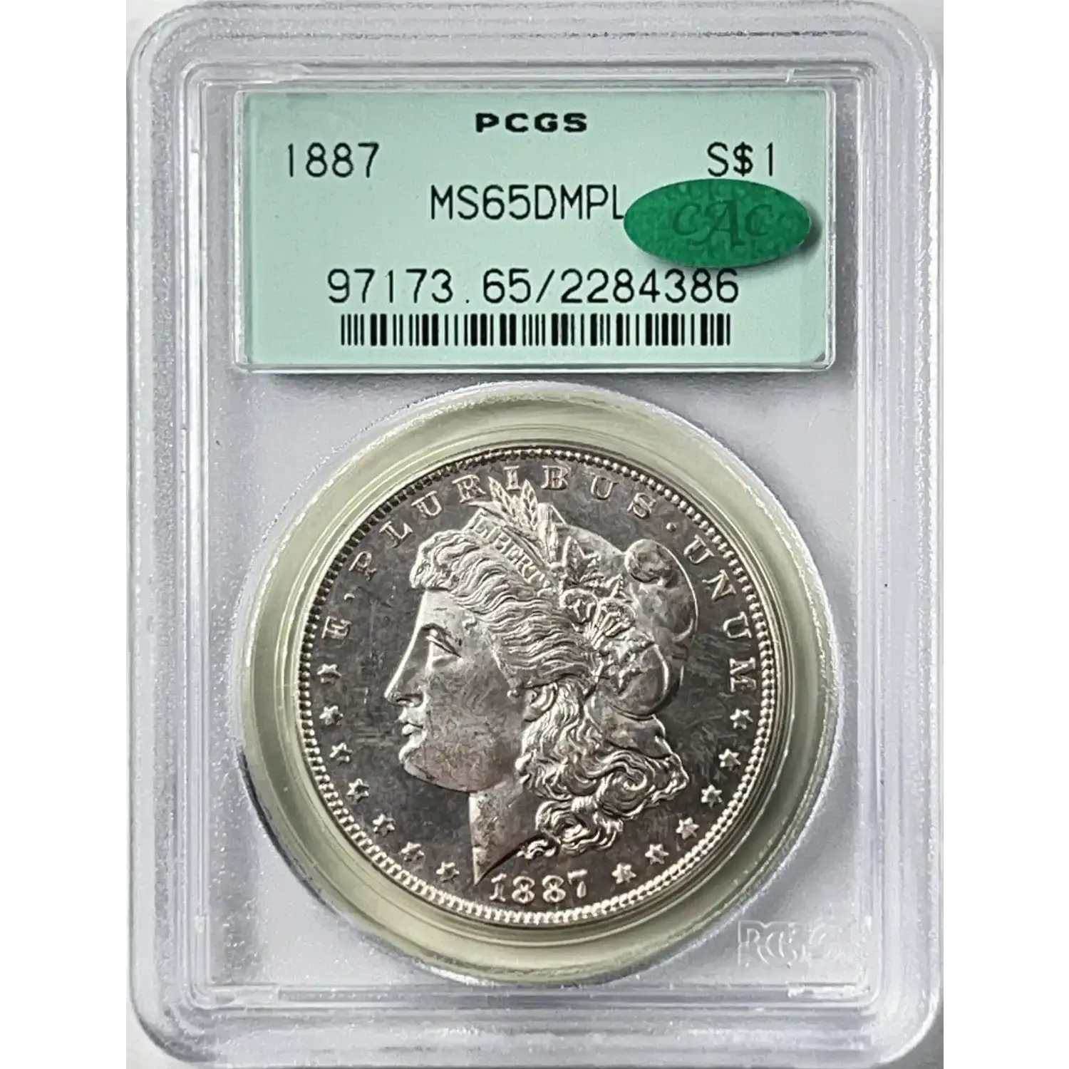 1887 $1 PCGS OGH MS65DMPL CAC Morgan Silver Dollar 2284386