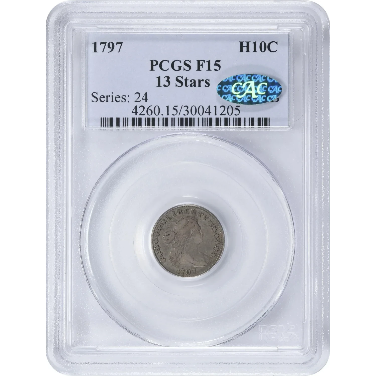 1797 H10C PCGS F15 CAC Draped Bust Half Dime 13 Stars 30041205