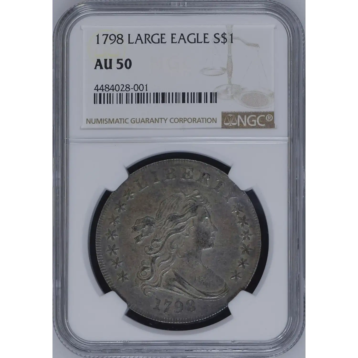 1798 $1 NGC AU50 Draped Bust Dollar Large Eagle, Pointed 9 4484028-001