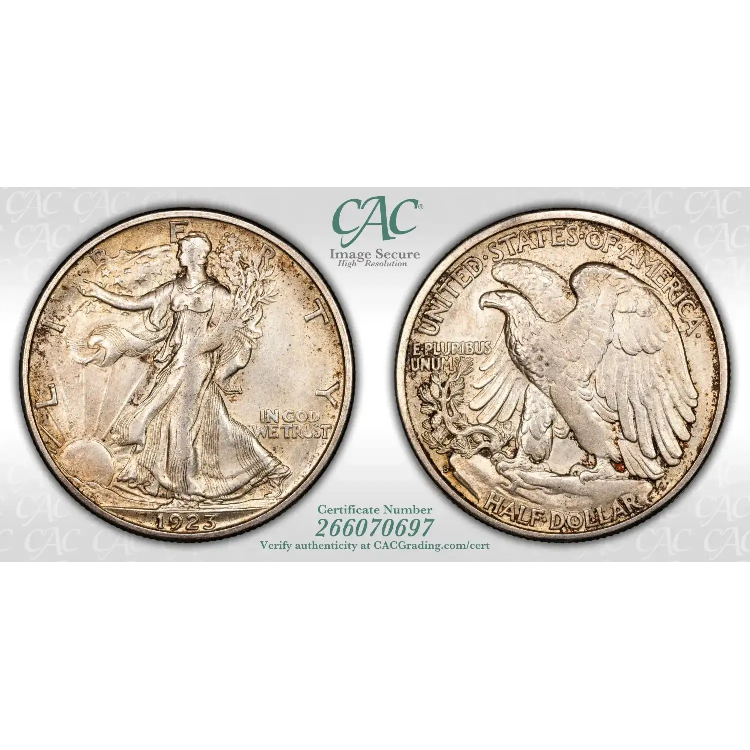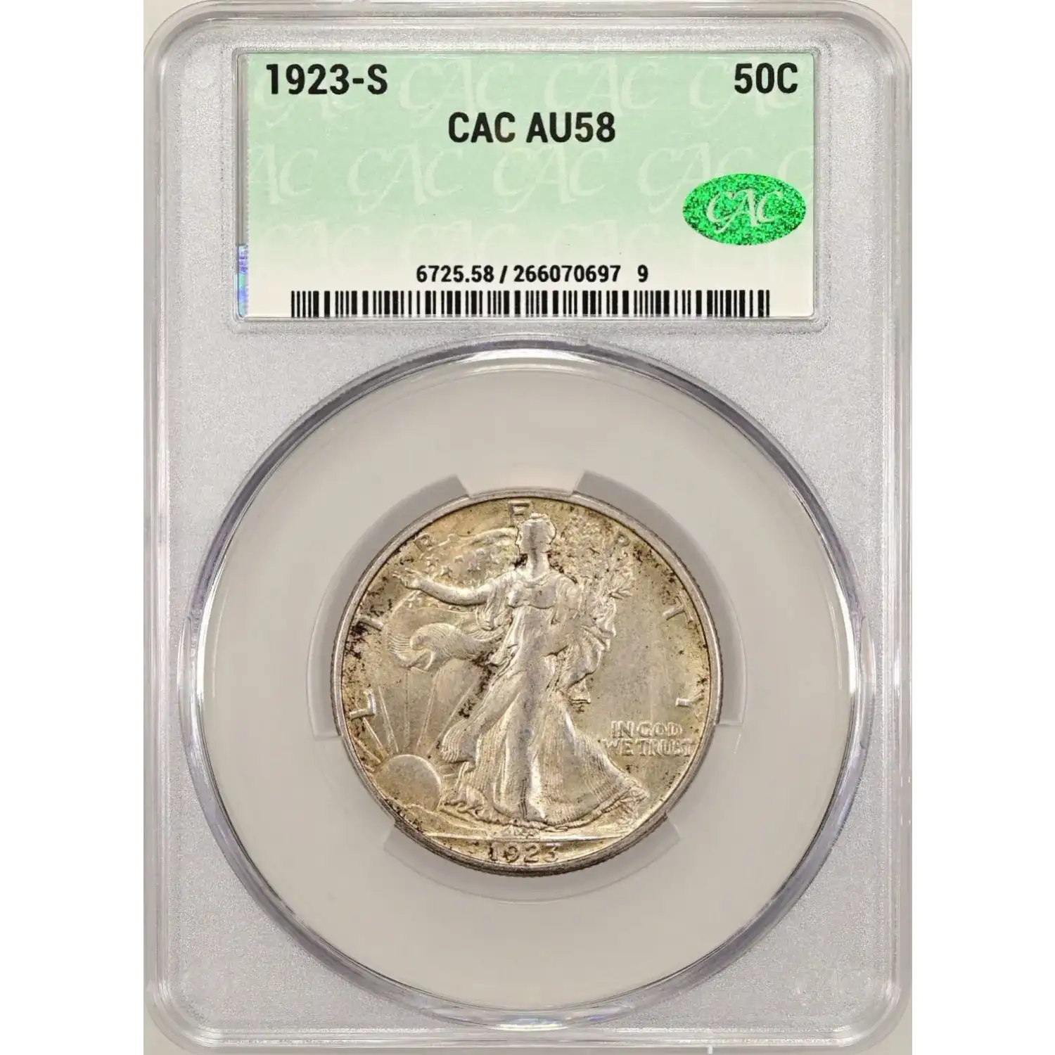 1923-S 50C CACG AU58 CAC Walking Liberty Half Dollar 266070697
