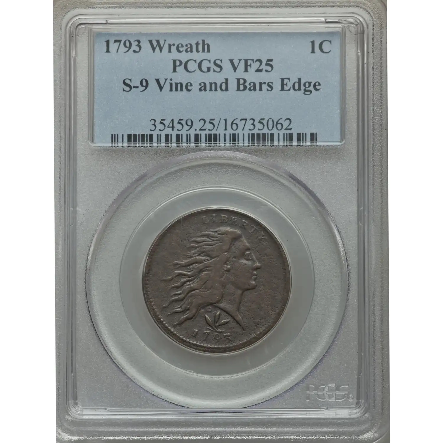 1793 1C PCGS VF25 Wreath Large Cent Vine and Bars Edge 16735062