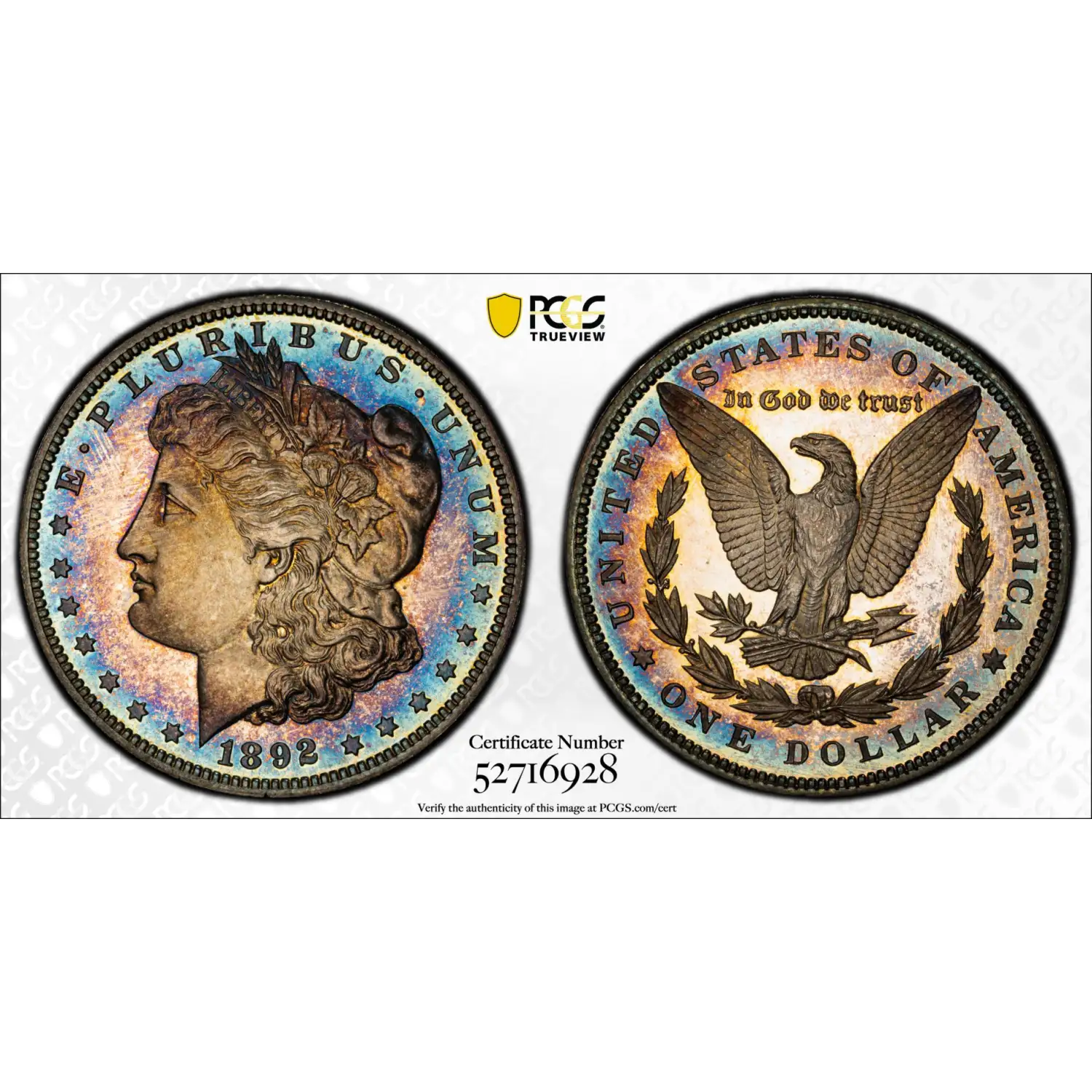 1892 $1 PCGS PR65CAM CAC Rainbow Toned Morgan Silver Dollar 52716928