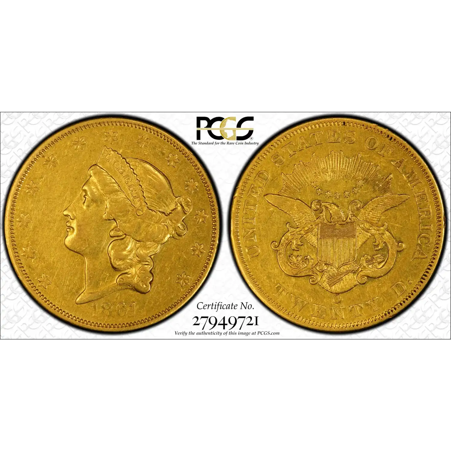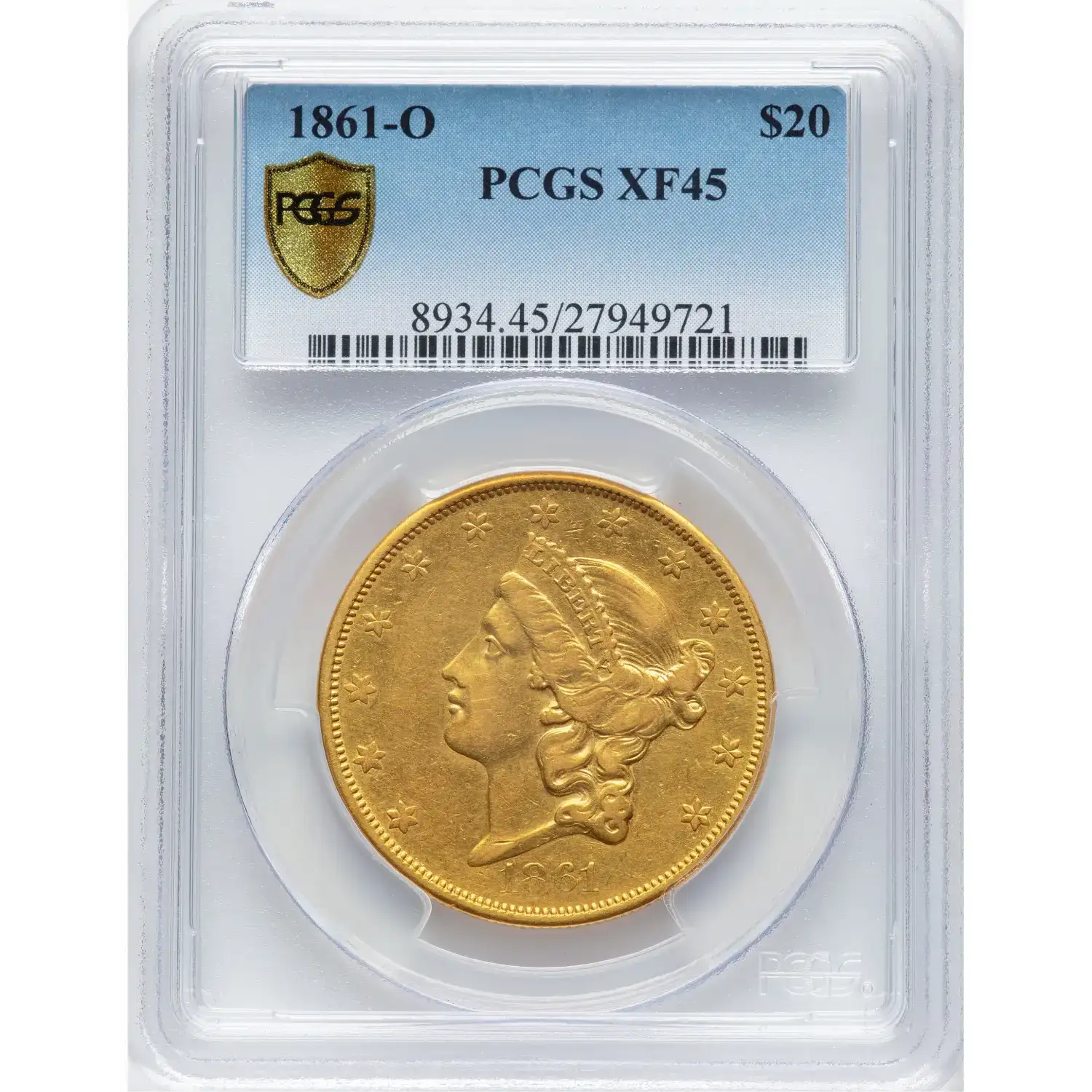 1861-O $20 Gold Liberty PCGS XF45 Gold Double Eagle Civil War Gold 27949721