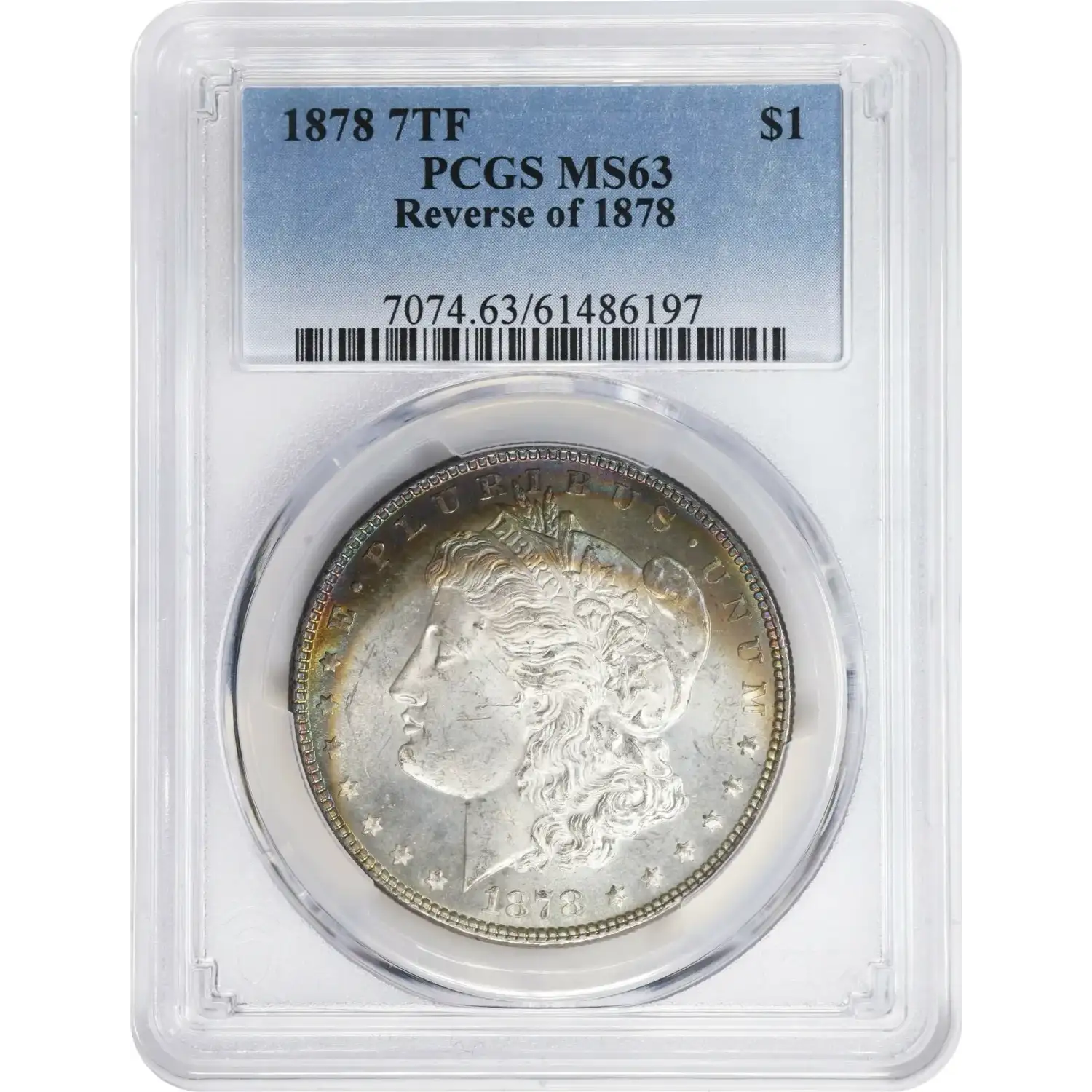 1878 7TF Reverse of 1878 $1 PCGS MS63 Rainbow Toned Morgan Silver Dollar 61486197