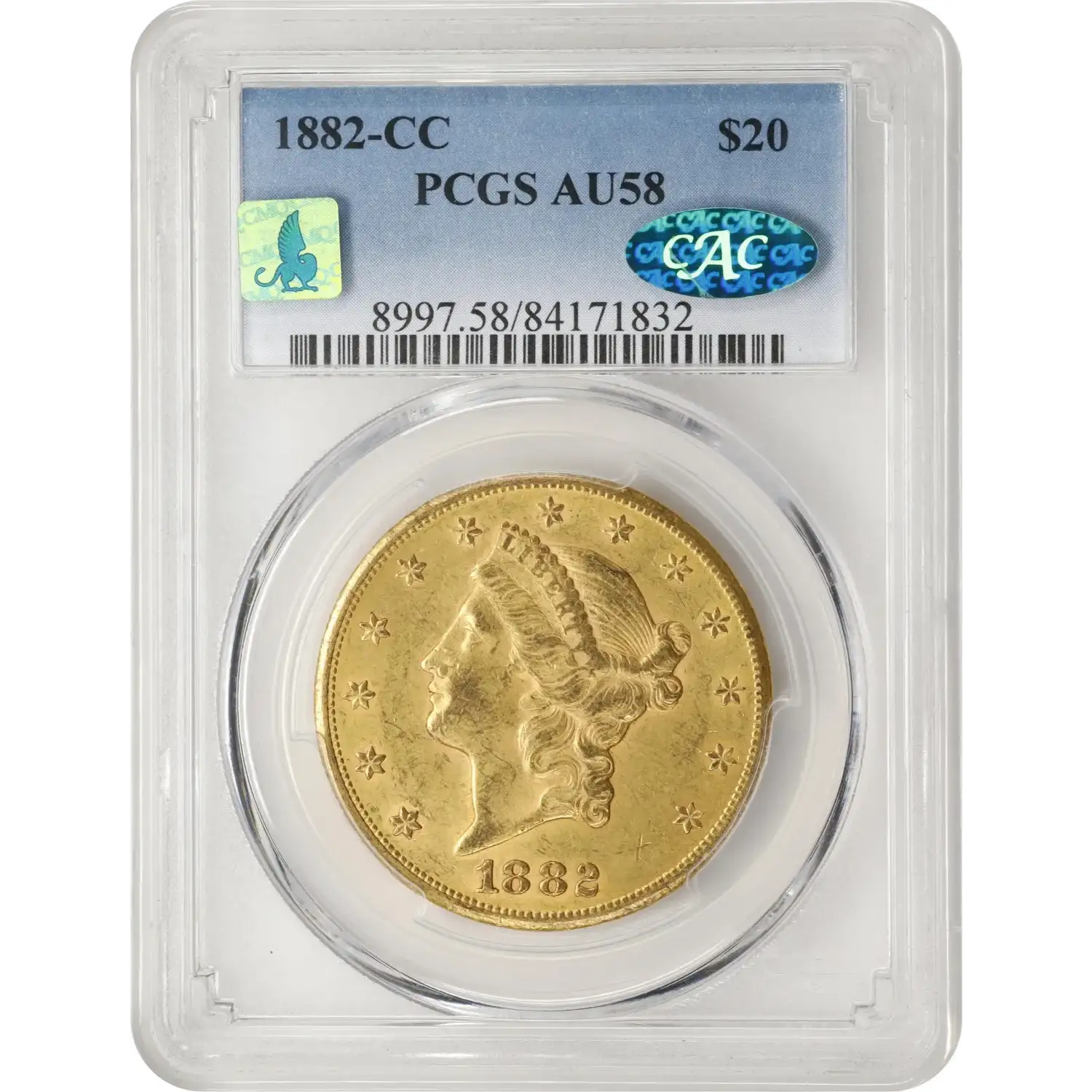1882-CC $20 Gold Liberty PCGS AU58 CAC Gold Double Eagle 84171832
