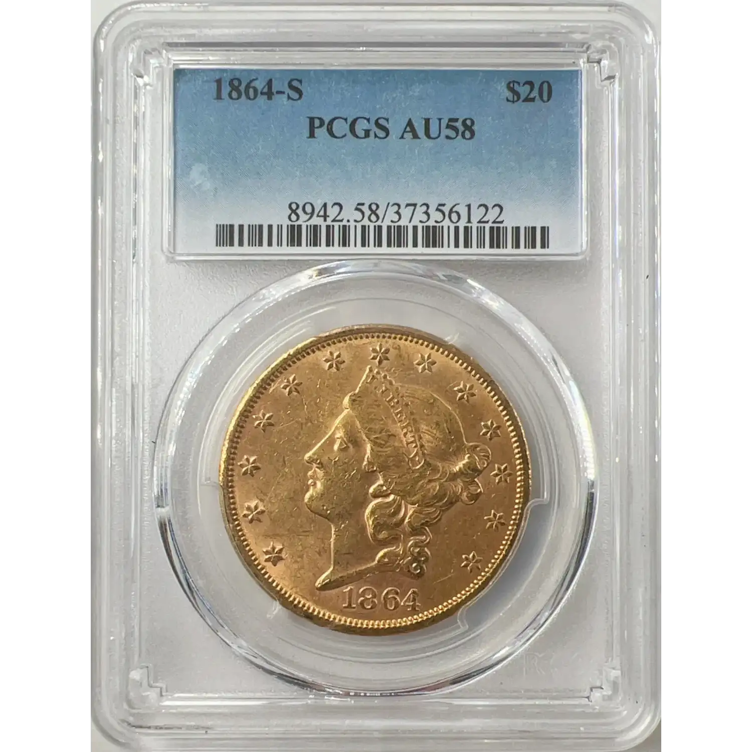 1864-S $20 Gold Liberty PCGS AU58 Gold Double Eagle Civil War Gold 37356122