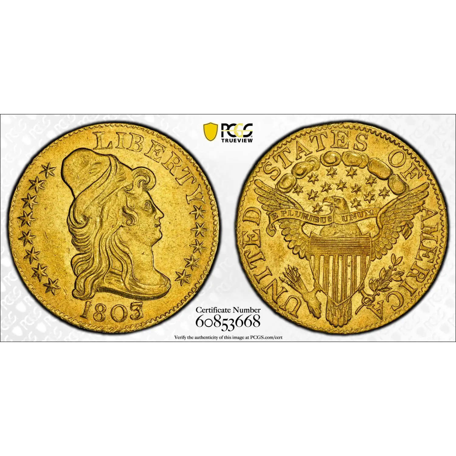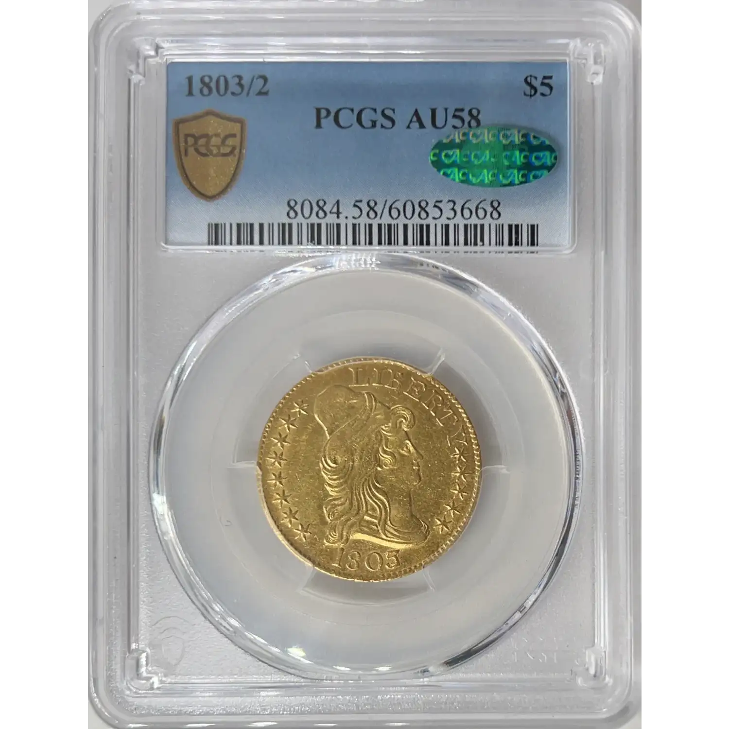 1803/2 $5 Gold Draped Bust PCGS AU58 CAC Gold Half Eagle 60853668
