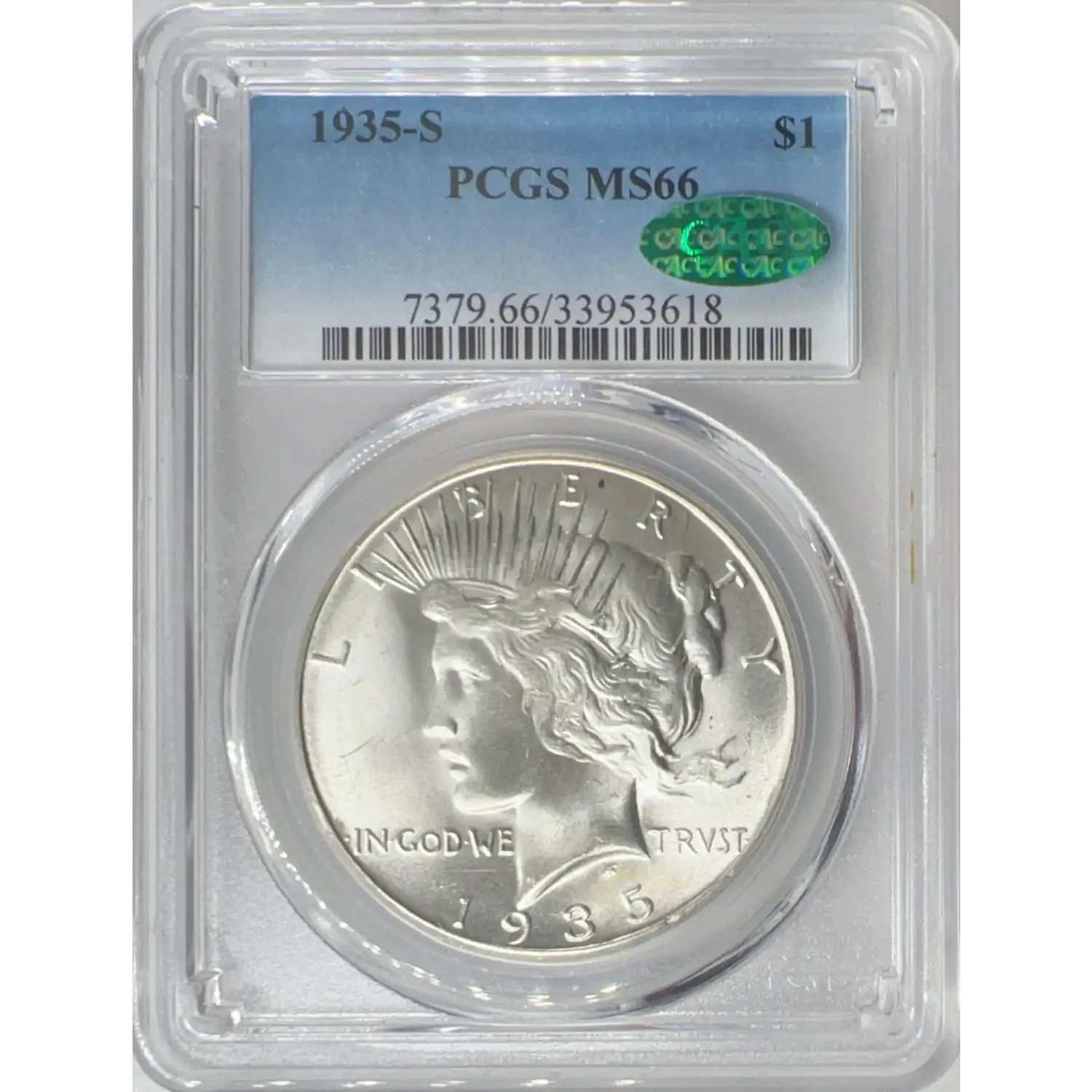 1935-S $1 PCGS MS66 CAC Peace Silver Dollar 33953618