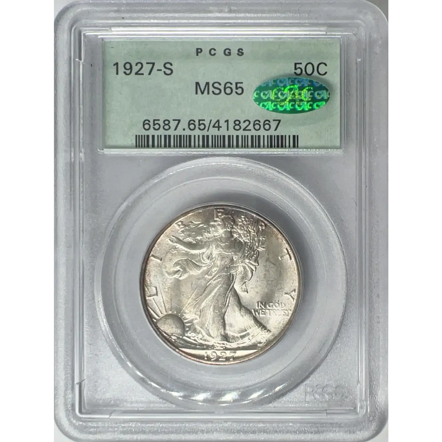 1927-S 50C PCGS OGH MS65 CAC Walking Liberty Half Dollar 04182667