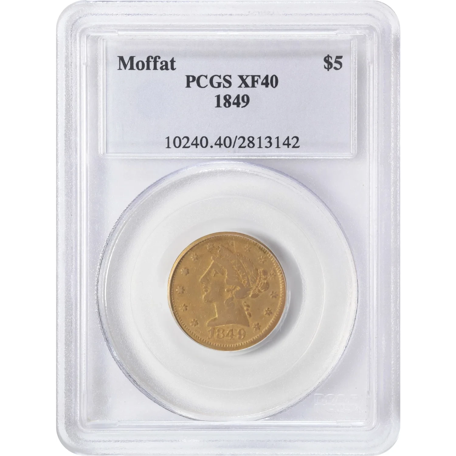 1849 $5 Gold Liberty PCGS XF40 Gold Half Eagle Moffat & Co 02813142