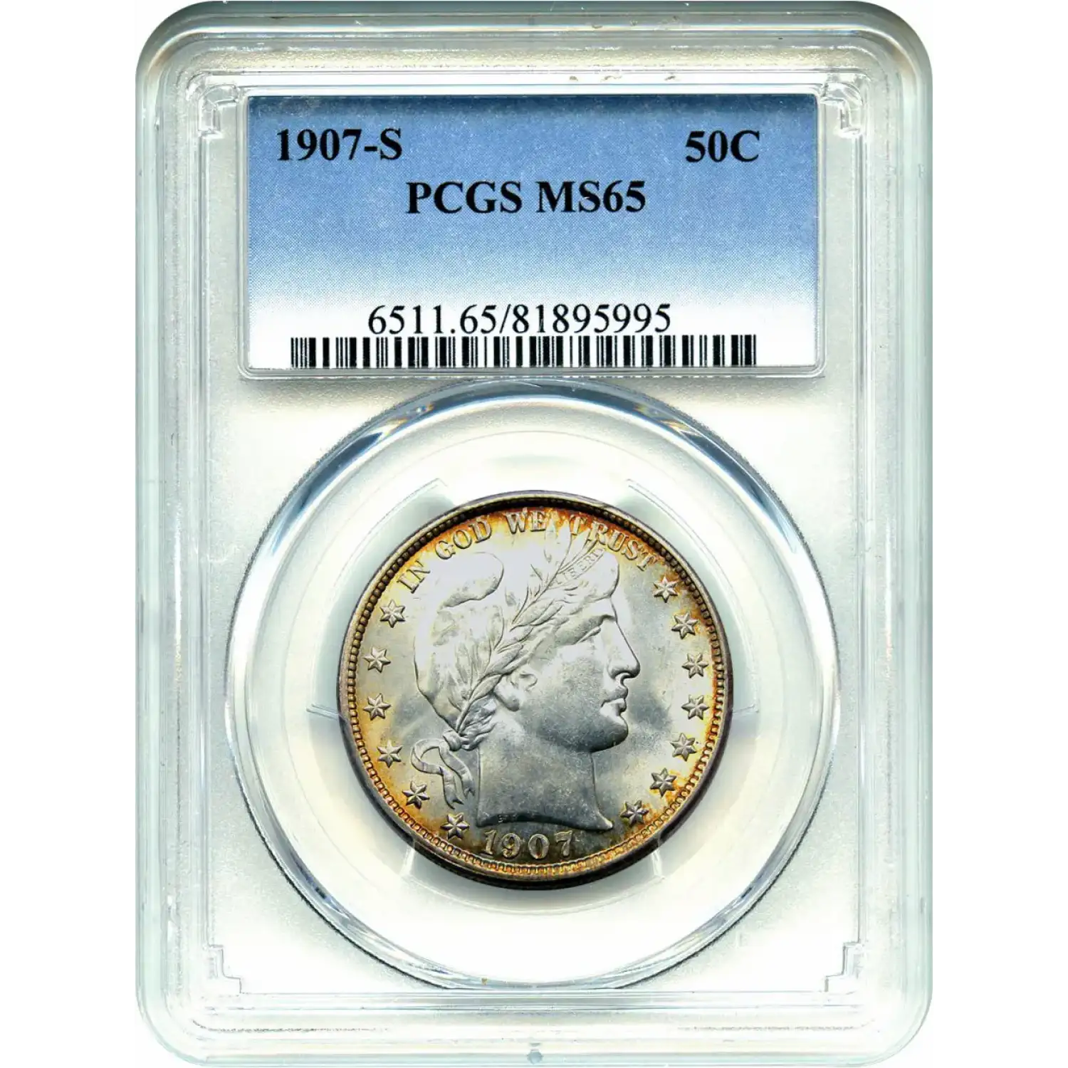 1907-S Barber Half Dollar PCGS MS-65
