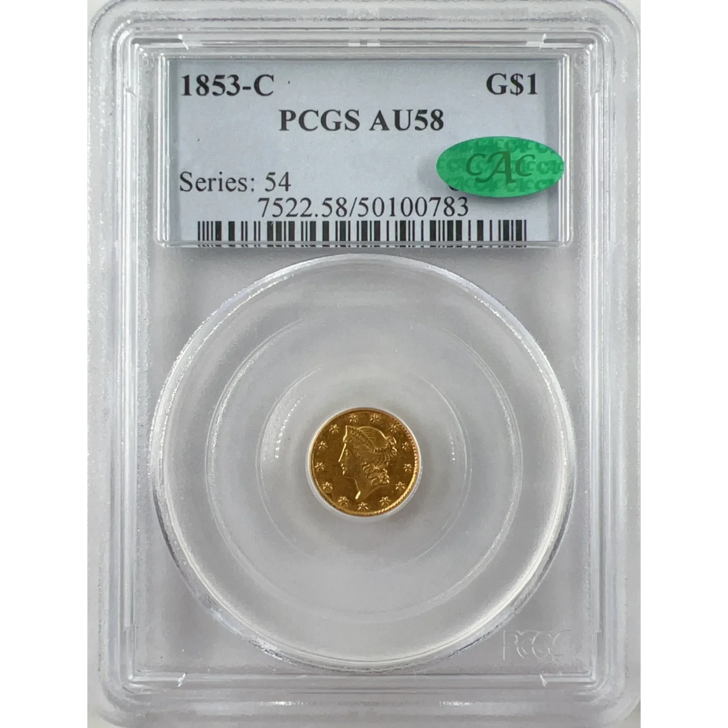 1853-C G$1 PCGS AU58 CAC Gold Dollar Old Series Holder 50100783