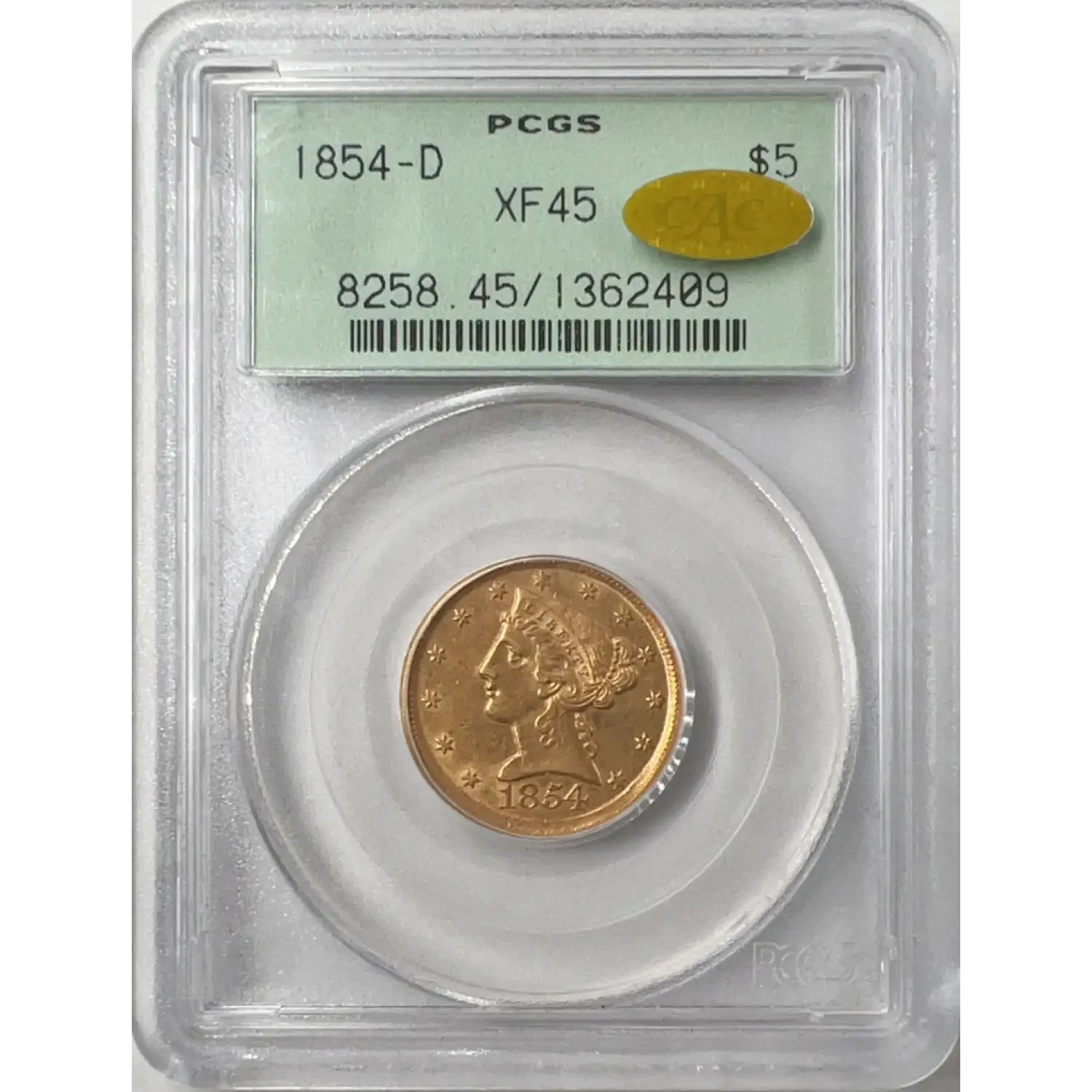 1854-D Large D $5 Gold Liberty PCGS OGH XF45 Gold CAC Gold Half Eagle 01362409